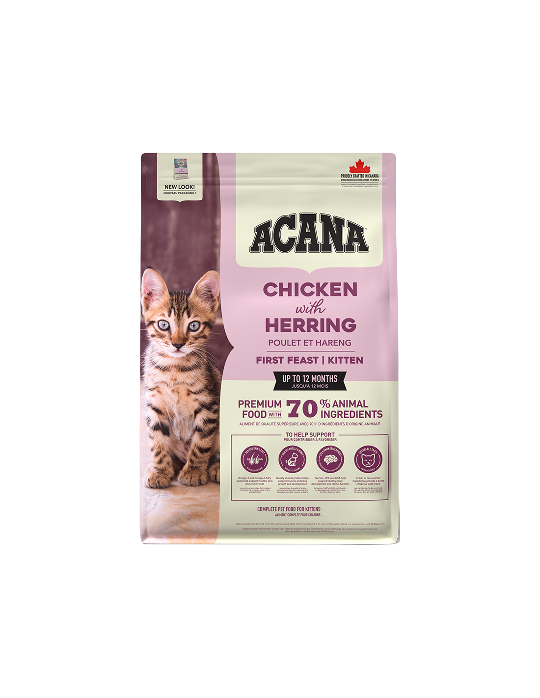 Aliment complet per a gatets de fins a 12 mesos de totes les races ACANA™ First Feast | Kitten – Pollastre i areng.