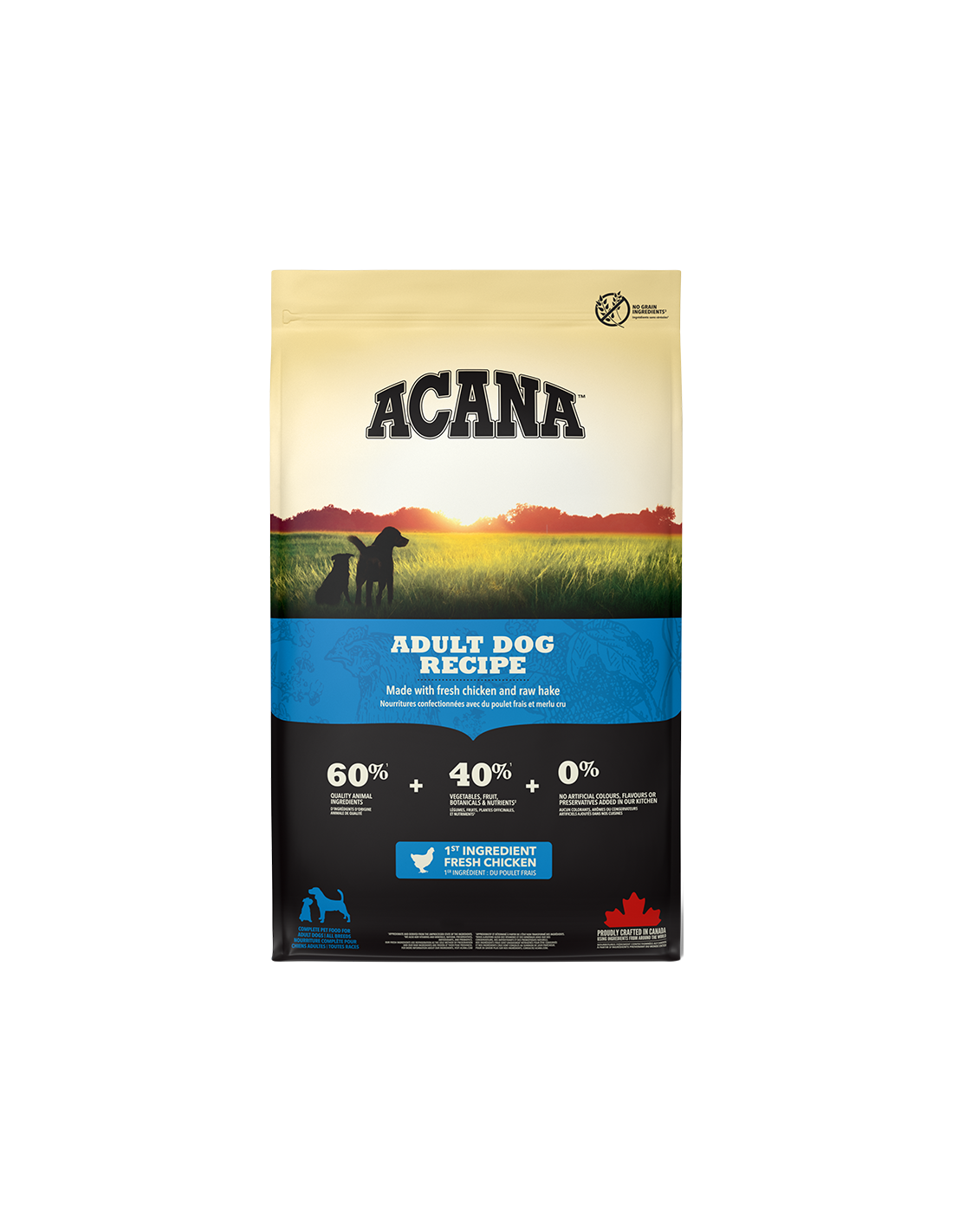 Amb pollastre criat en llibertat, palaia capturada en el seu entorn natural i ous frescos de corral, ACANA Adult Dog està ple de les proteïnes i nutrients que els gossos necessiten. Inclou carn, però també òrgans, cartílag i os per proporcionar nutrients de manera natural en la seva forma més nutritiva.