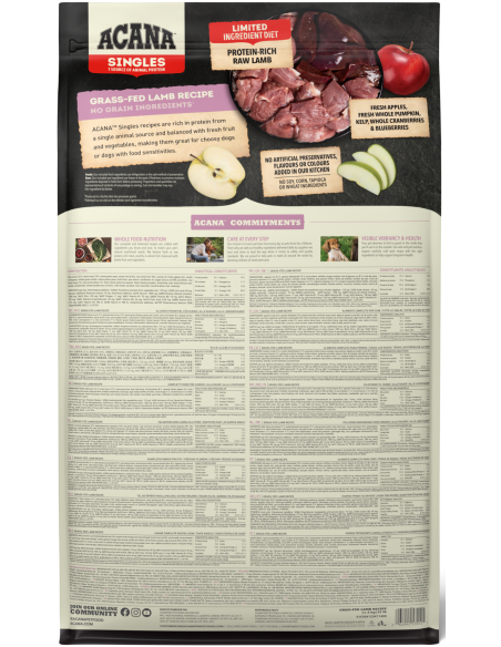 Aliment complet per a gossos de totes les races i totes les etapes de la vida ACANA™ Singles Grass-Fed Lamb - Xai, poma i lavanda.