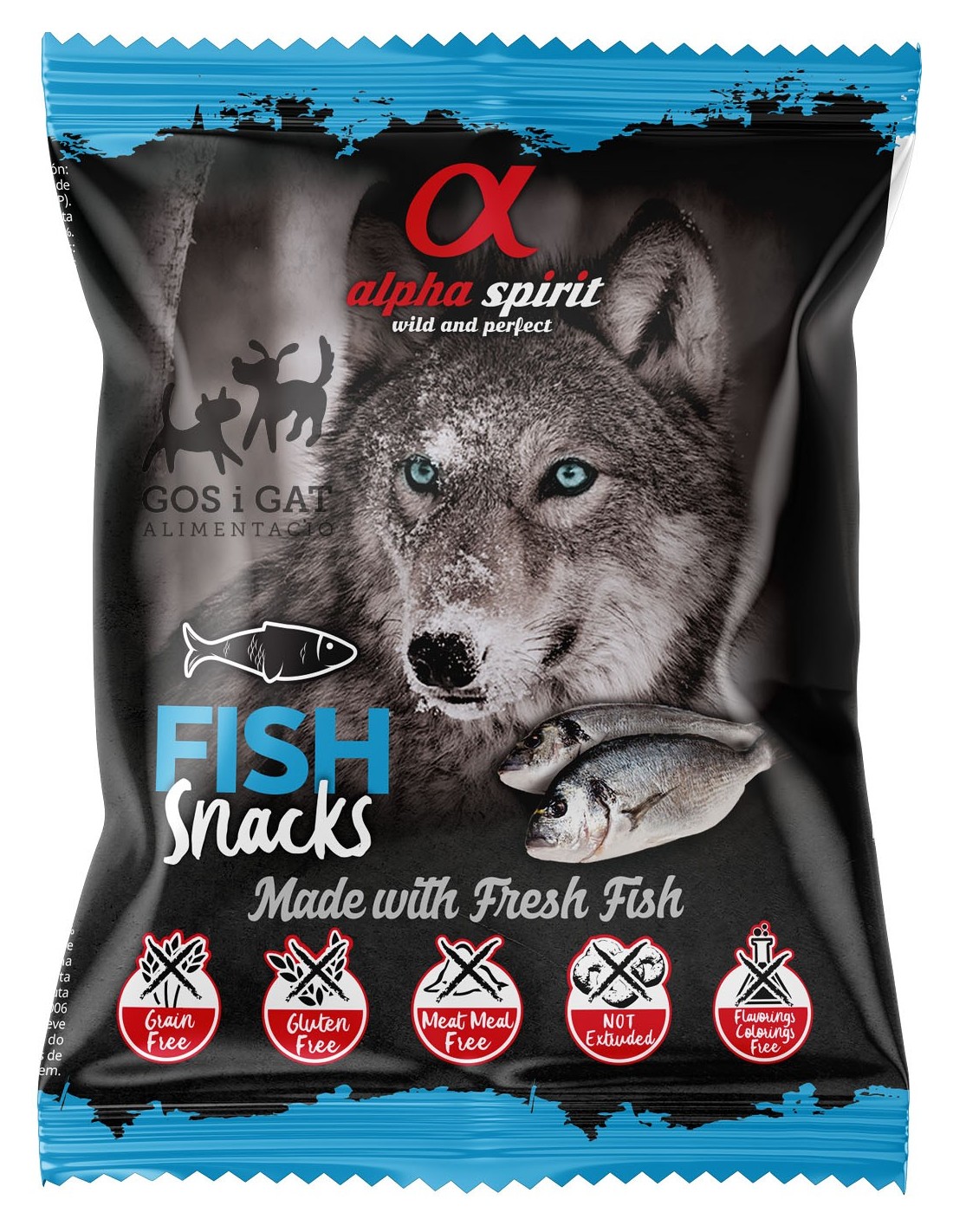 Alpha Spirit Adult Snack Fish 50 gr. Premis Naturals i Tous per Gossos Sense Cereals i amb Fins un 85% de Carns