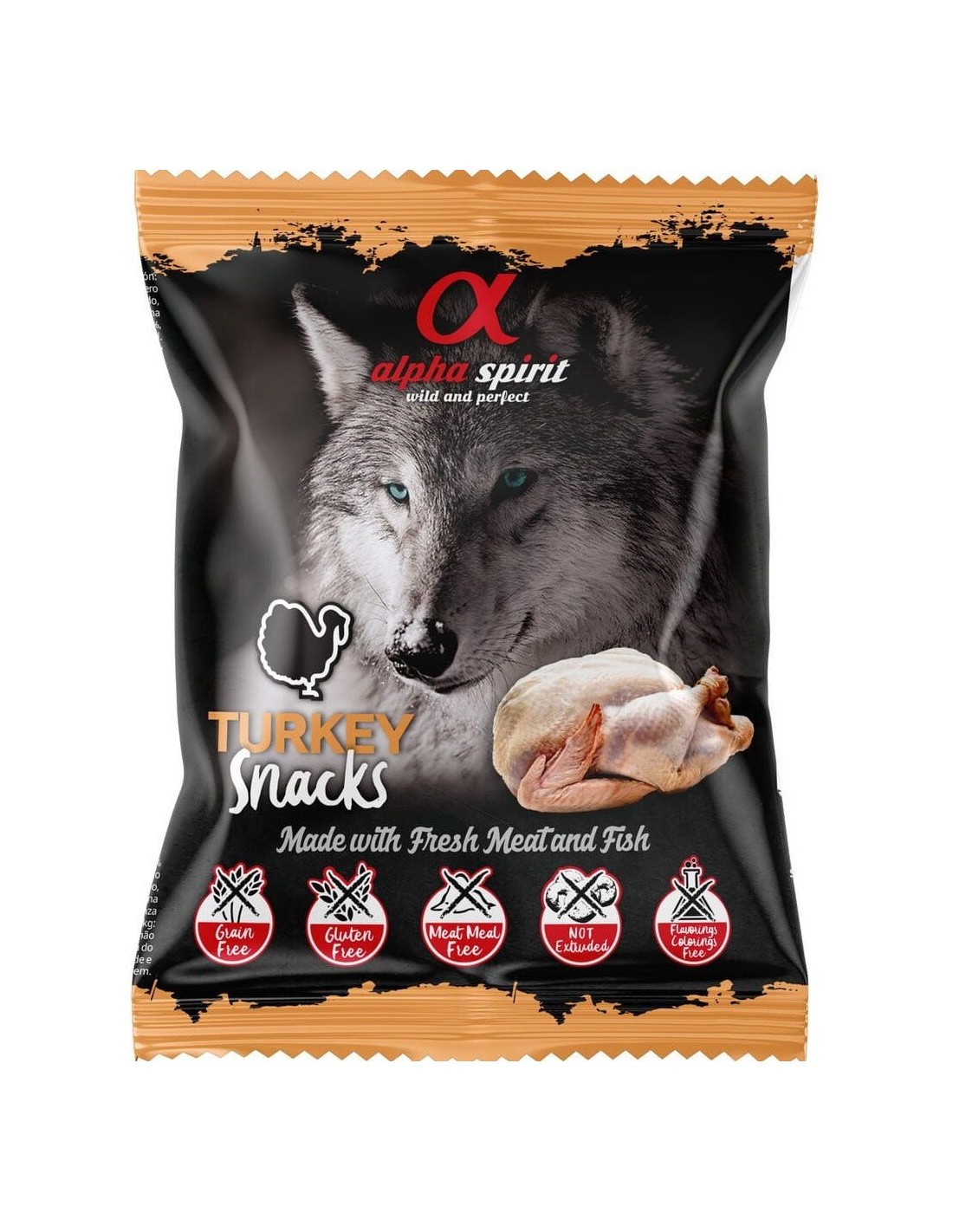 A més, els snacks de Alpha Spirit tenen una palatabilidad molt alta i són petits i tous, Satisfaran els paladars de fins i tot els gossos més exigents!