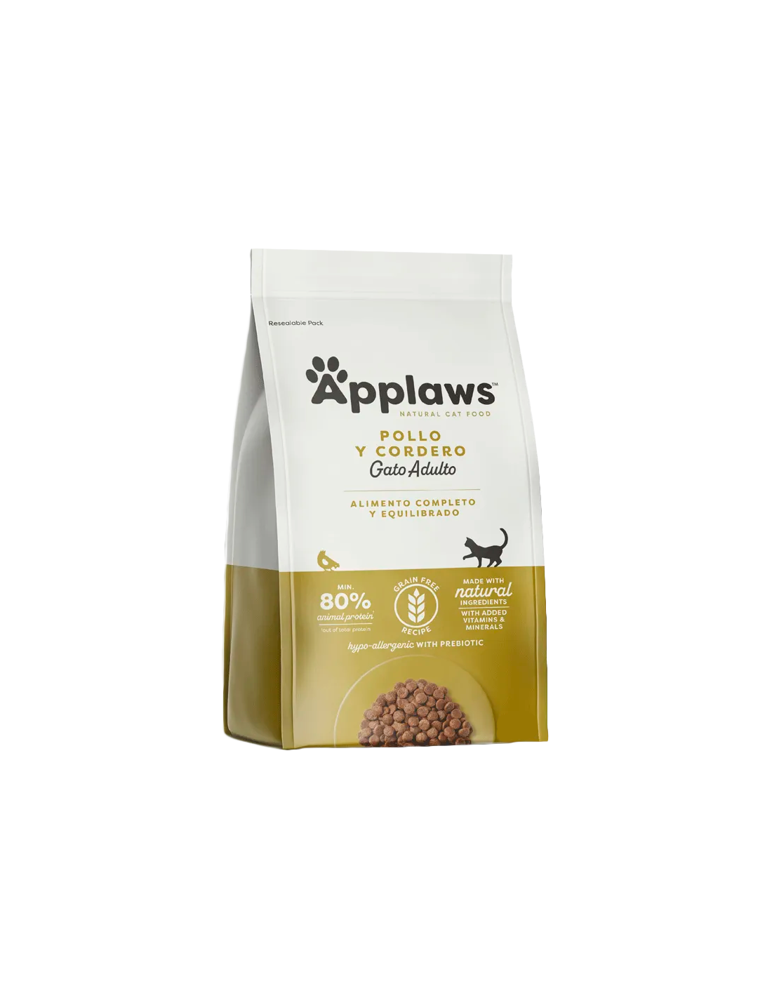Applaws Cat Adult Pollastre i Xai és un pinso natural i complet per a gats adults, formulat sense cereals ni additius artificials. Amb pollastre (40,5%) i xai (4%), aquest aliment és una font natural de taurina essencial i conté prebiòtics (FOS) per donar suport a una digestió saludable i una flora intestinal equilibrada.