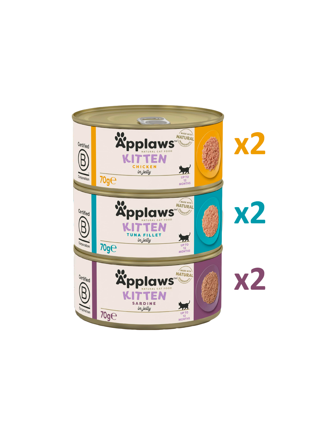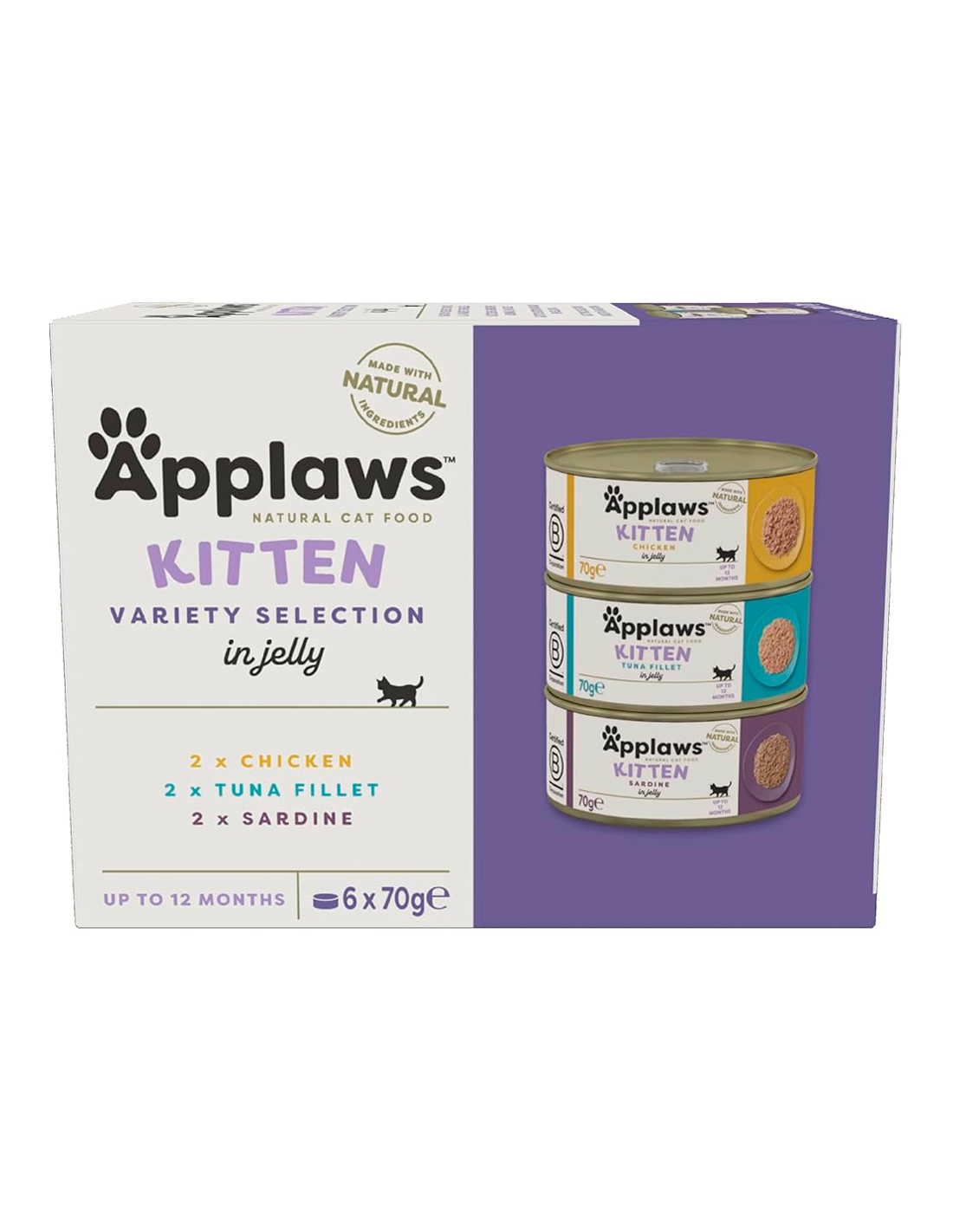 Applaws Kitten Selecció Variada en Gelatina és un multipack d'aliment complementari natural, ideal per a gatets en creixement o amb sensibilitats alimentàries. Elaborat amb ingredients de la millor qualitat, sense additius ni cereals amb gluten, i ric en aminoàcids naturals com taurina i arginina essencials per al seu desenvolupament.