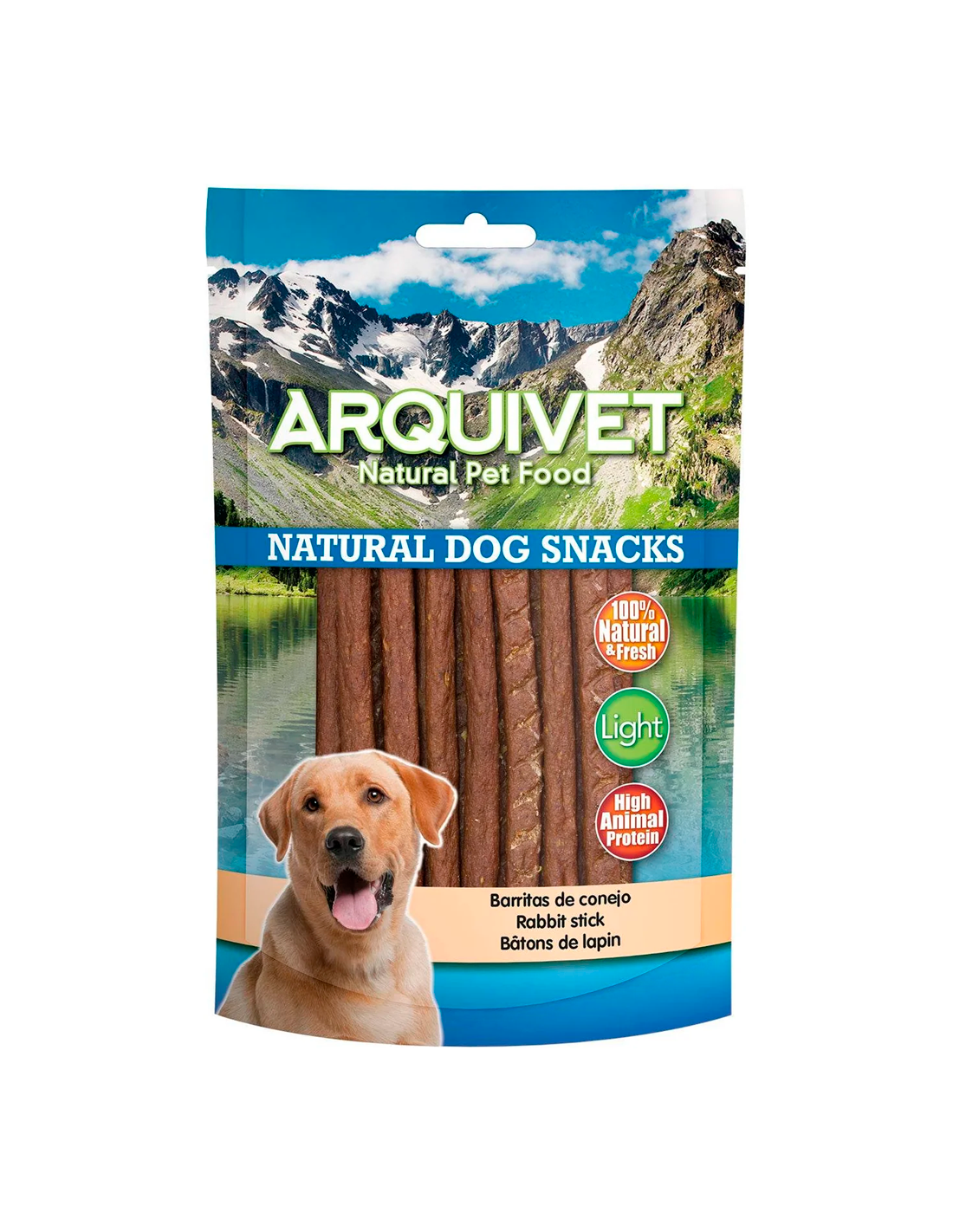 Les Arquivet Barretes de Conill són un aliment complementari 100% natural per a gossos, elaborades amb un 70% de carn de conill. Són riques en proteïna animal i baixes en greixos (Producte Light), ideals com a recompensa o regal dins d'una dieta equilibrada.