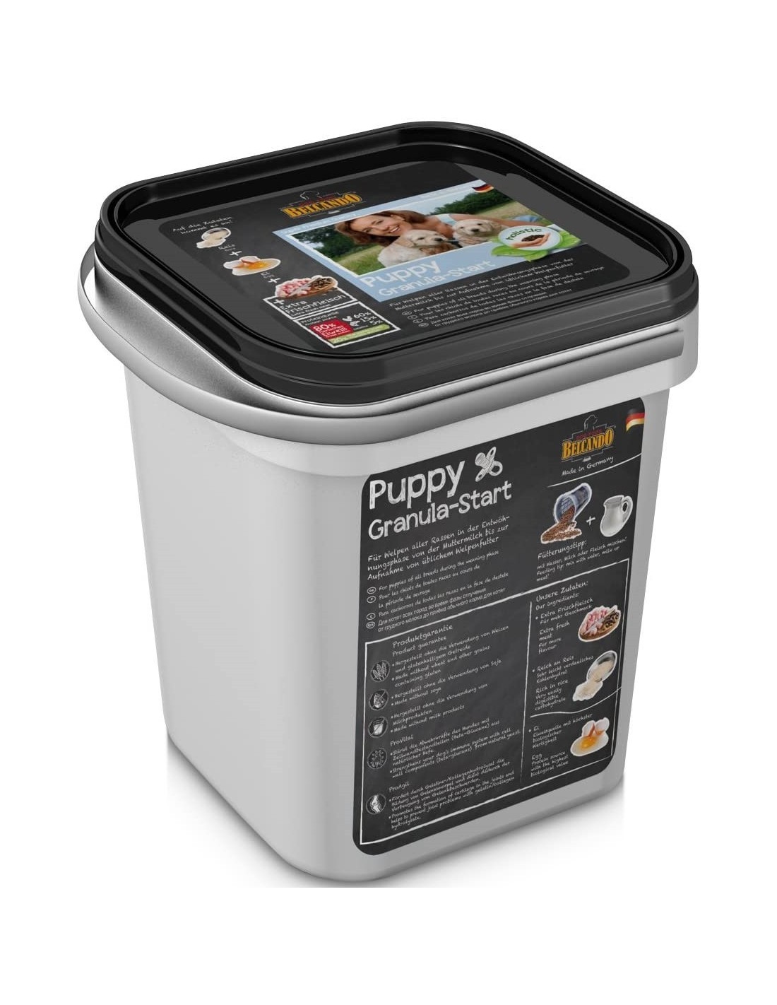 Producte especial perquè els cadells comencin a habituar-se al menjar després alimentar-se només a base de llet. BELCANDO PUPPY GRANULA-START es “granula“ fins a una grandària determinada utilitzant un mètode especial. El resultat és un menjar d'estructura sòlida però amb partícules de grandària molt petita (0,2 - 0,4 mm). BELCANDO PUPPY GRANULA-START es dissol molt bé en la llet per cadells BELCANDO o en aigua fins a formar unes farinetes o també es pot barrejar amb carn.