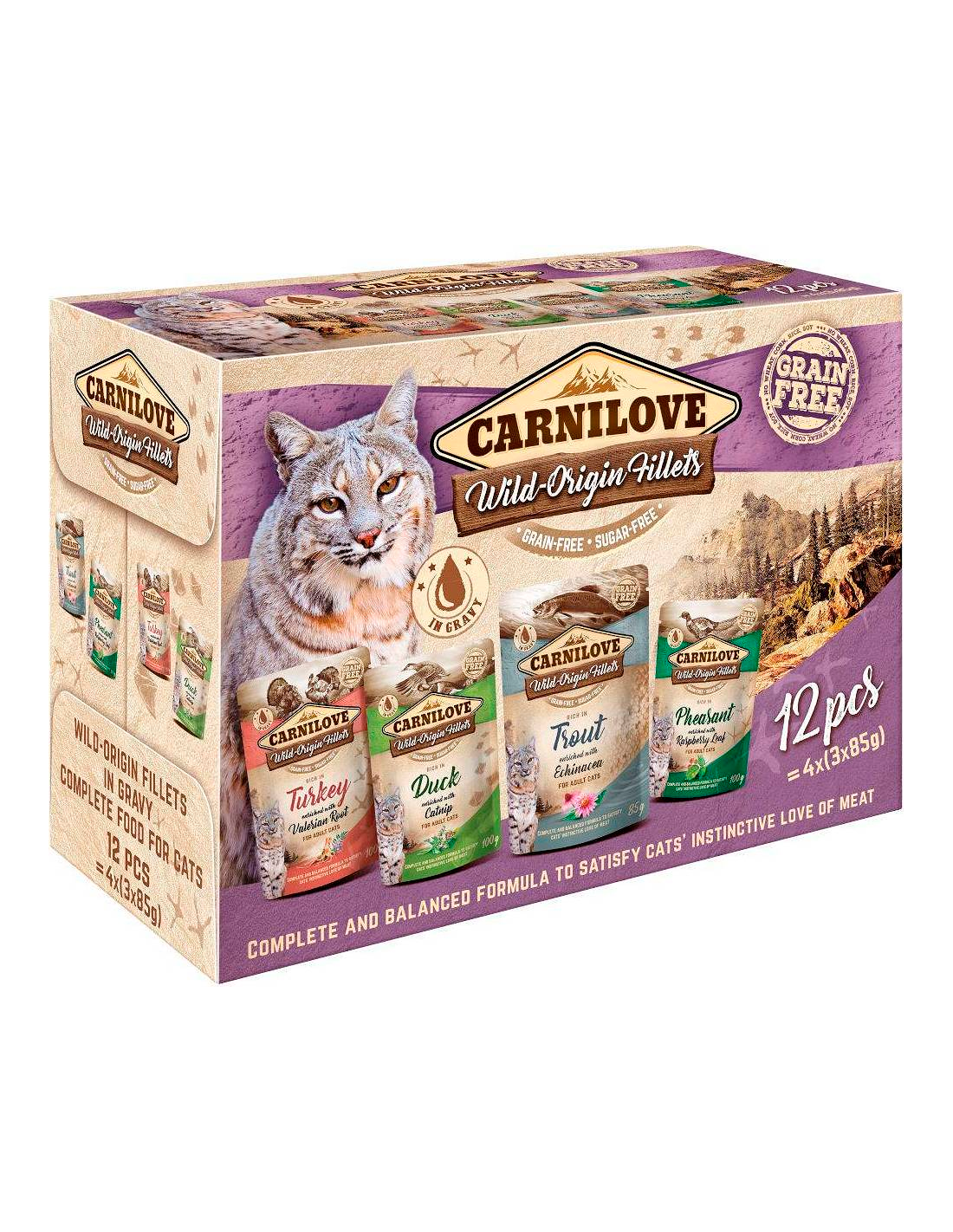 El Multipack de Carnilove Cat Wild Origin Fillets ofereix una dieta excepcional per al teu felí, amb pouches d'aliment humit sense cereals, sense patates, sense OGM, sense colorants ni conservants artificials. Cada sobre conté un 85% de carn, proporcionant una font òptima de proteïnes per a la salut i vitalitat del teu gat, amb diverses i delicioses receptes.