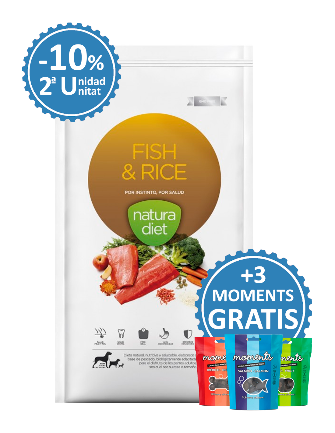 Dingo Natura Diet Adult Fish & Rice és una dieta natural, nutritiva i saludable, elaborada a base de peix i arròs, biològicament adaptada per a gossos adults de qualsevol raça o mida. És un aliment altament digestible amb ingredients naturals de baixa o nul·la capacitat al·lergènica.