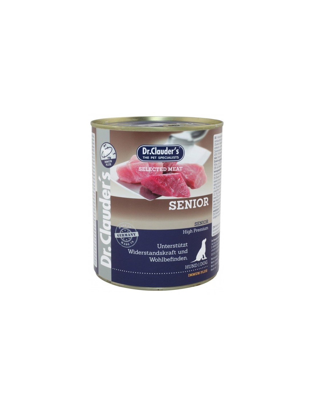 Dr. Clauder's Dog Senior és un menjar humit amb carn de vedella per a gossos séniors de totes les races.