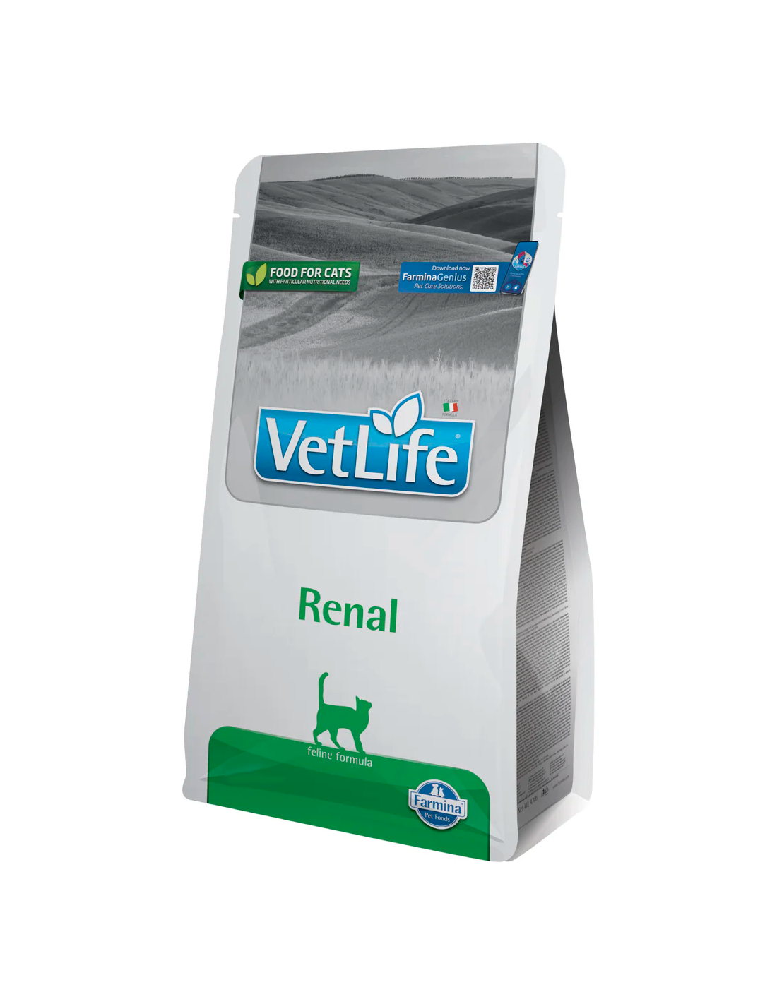 Farmina VetLife Renal és un aliment dietètic complet per a gats, especialment formulat per donar suport a la funció renal en casos d'insuficiència renal crònica o temporal. Aquest pinso es caracteritza per les seves baixes concentracions de fòsfor i un nivell limitat de proteïnes d'elevada qualitat.