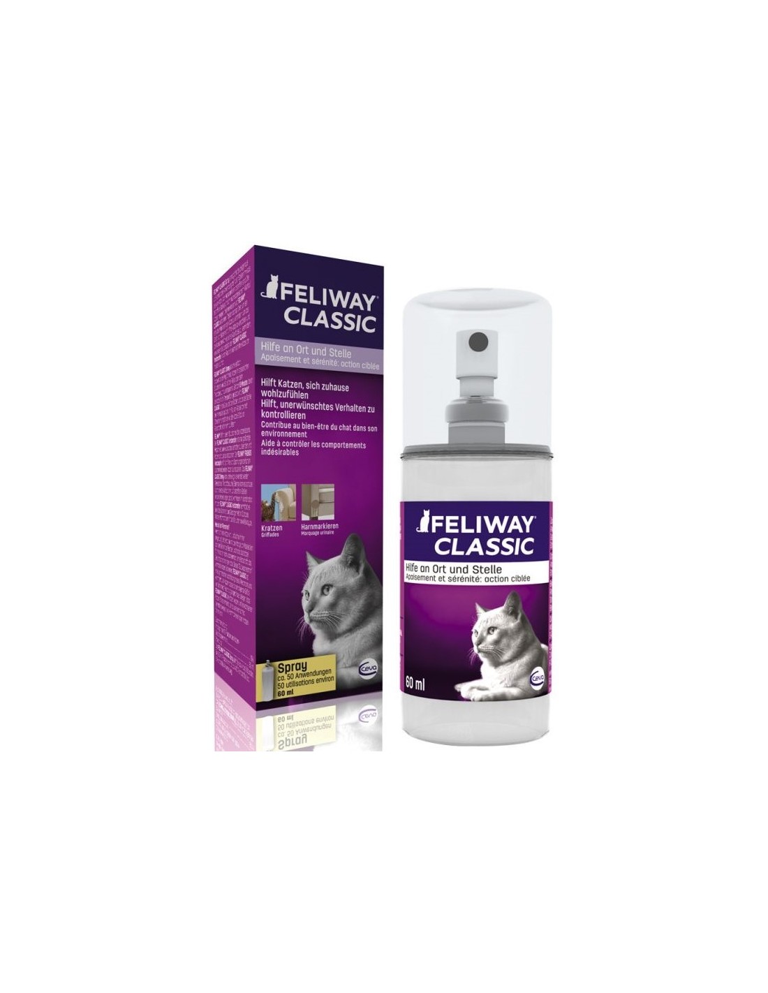 L'spray es pot usar fins i tot en situacions molt especials, tals com les visites al veterinari (en transportí) o si el gat marca territori mitjançant l'orina o les esgarrapades en zones puntuals. Amb el pràctic spray per al transport pots millorar situacions incòmodes, com els viatges en transportí. El recipient d'aquest spray té la grandària ideal perquè el puguis portar en la bossa o motxilla i ajuda a relaxar al gat.