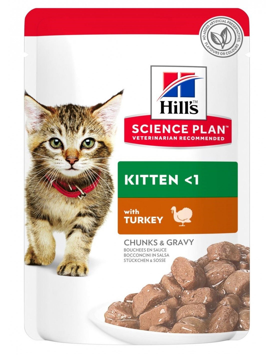 Al teu gatet adorarà el sabor de Hill's Science Plan Cat Kitten Chunks&Gravy amb gall dindi en mossets amb salsa. Té l'equilibri perfecte entre sabor i nutrició. Cuidadosament equilibrat per proporcionar la quantitat adequada d'energia per afavorir el pes ideal en gatets de menys d'1 any d'edat.