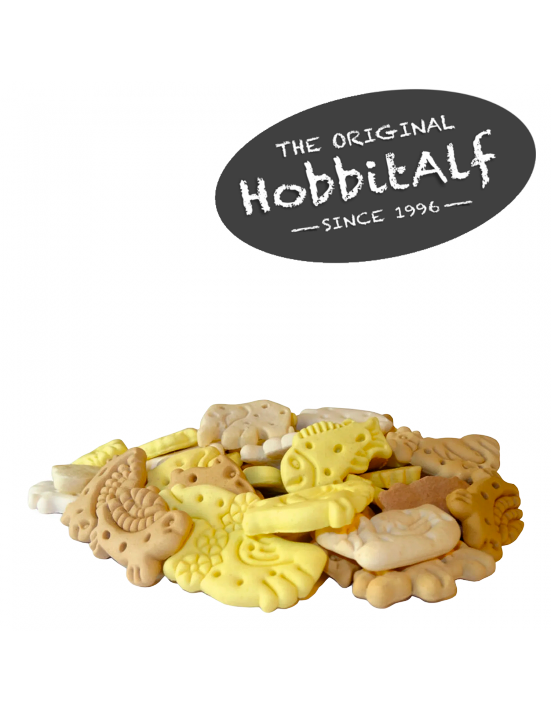 Les HobbitAlf Adult Galeta Granja són saboroses galetes amb formes d'animals de granja i una agradable olor de vainilla, perfectes com a recompensa en l'ensinistrament del teu gos adult. Enriquides amb calci, contribueixen a unes dents i ossos forts, i estan elaborades sense gluten amb ingredients de gran qualitat.