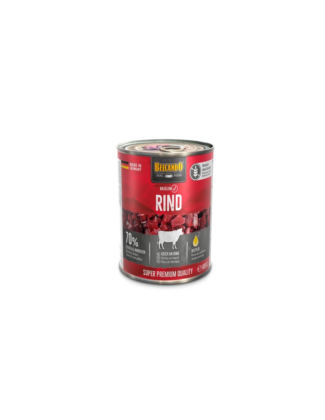 Tots els ingredients es couen suaument al vapor a la llauna, cosa que garanteix que els nutrients i el sabor irresistible de la carn es conservin en la millor mesura possible. Especial extra: el reforç d'oli de càrtam amb vitamina E natural per a la pell i el pelatge!