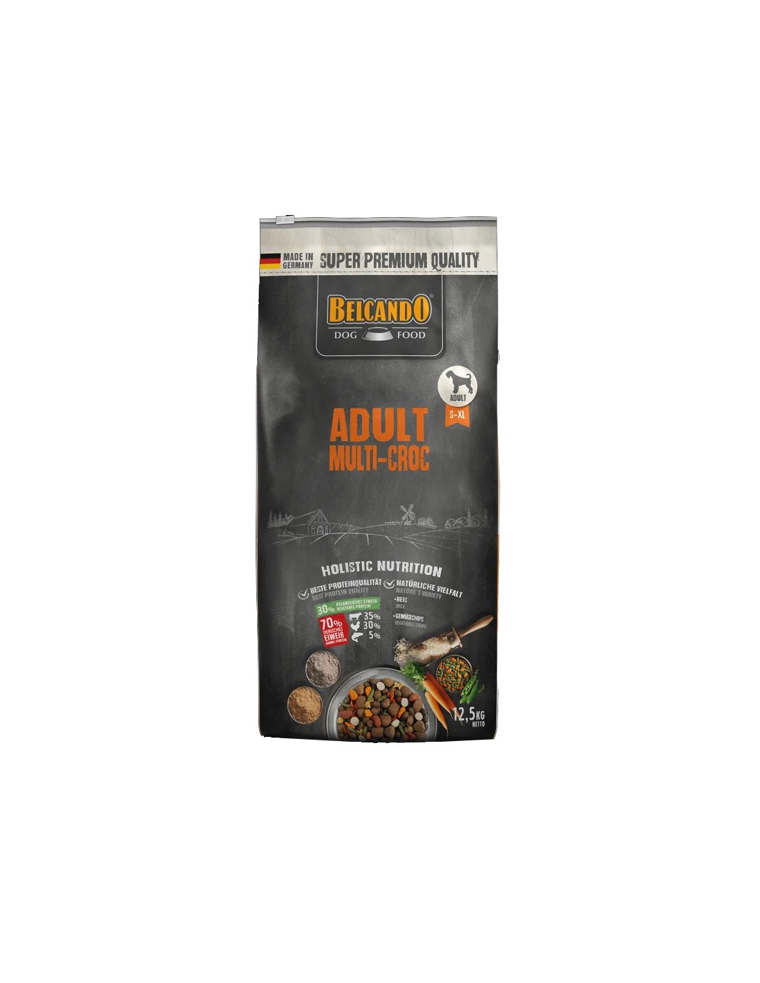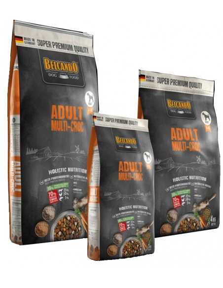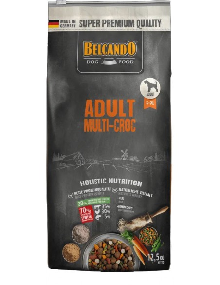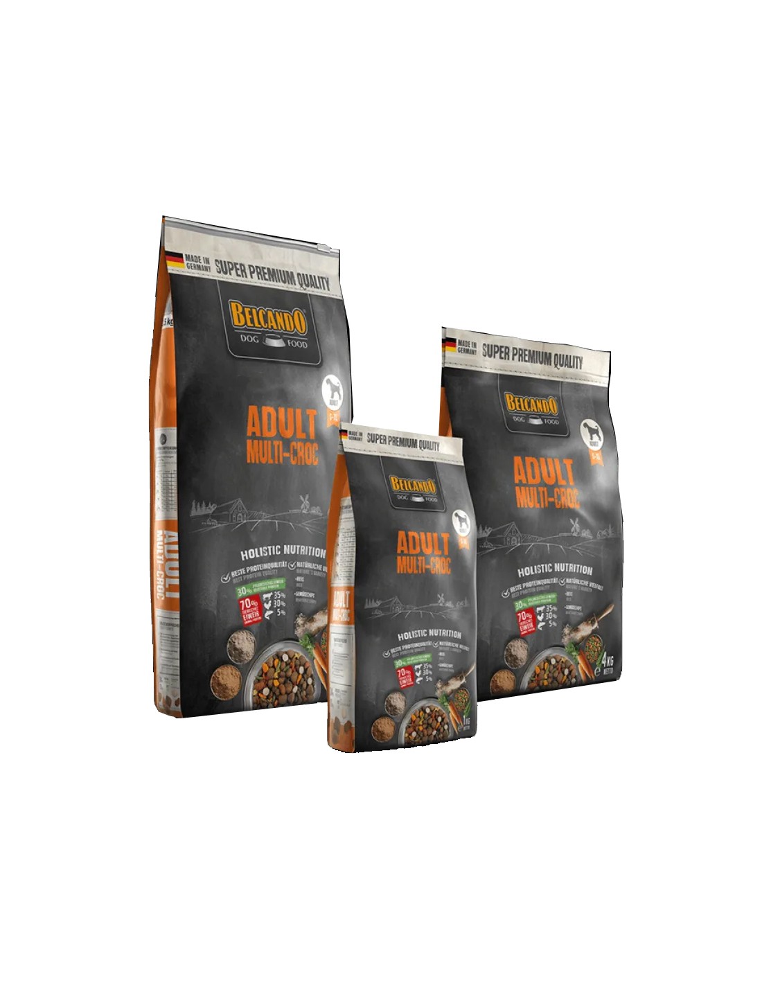 Unes excel·lents matèries primeres i molt arròs com a carbohidrat de digestió extremadament fàcil fan que BELCANDO® Adult Multi-Croc es toleri molt bé. La saborosa combinació de diferents croquetes, trossets de verdures i pasta és ideal per a gossos adults als quals els agradi la varietat.
