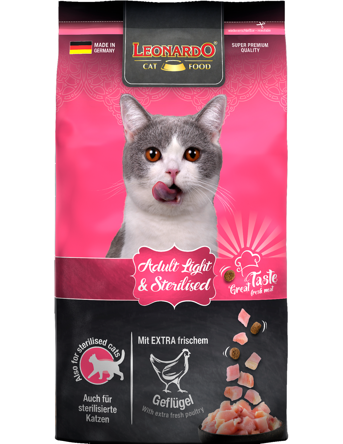 Per consegüent, l'adaptació primerenca de l'alimentació mitjançant un aliment per gats de baix contingut energètic, com LEONARDO Adult Light, afavoreix en gran manera la salut del gat i l'ajuda a recuperar la forma.