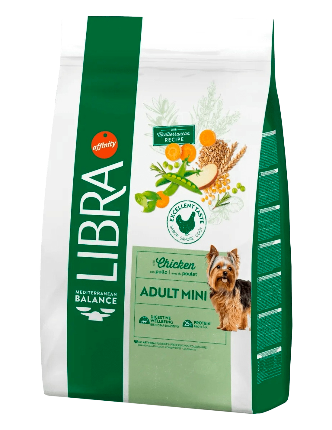 Libra Dog Adult Mini Pollastre és una nutrició completa i equilibrada per a gossos mini. Formulada amb pollastre, cereals integrals, fruites, verdures i herbes aromàtiques, aquesta dieta mediterrània aporta tots els nutrients essencials per mantenir el teu gos en òptimes condicions.