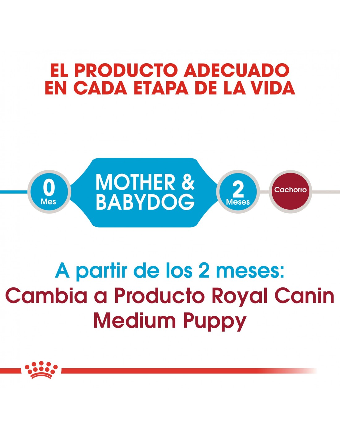 El perfil nutricional de Medium Starter Mother & Babydog de ROYAL CANIN® està adaptat per a cobrir els alts requeriments d'energia necessàries a partir del 42è dia de gestació i durant tot el període de lactància.