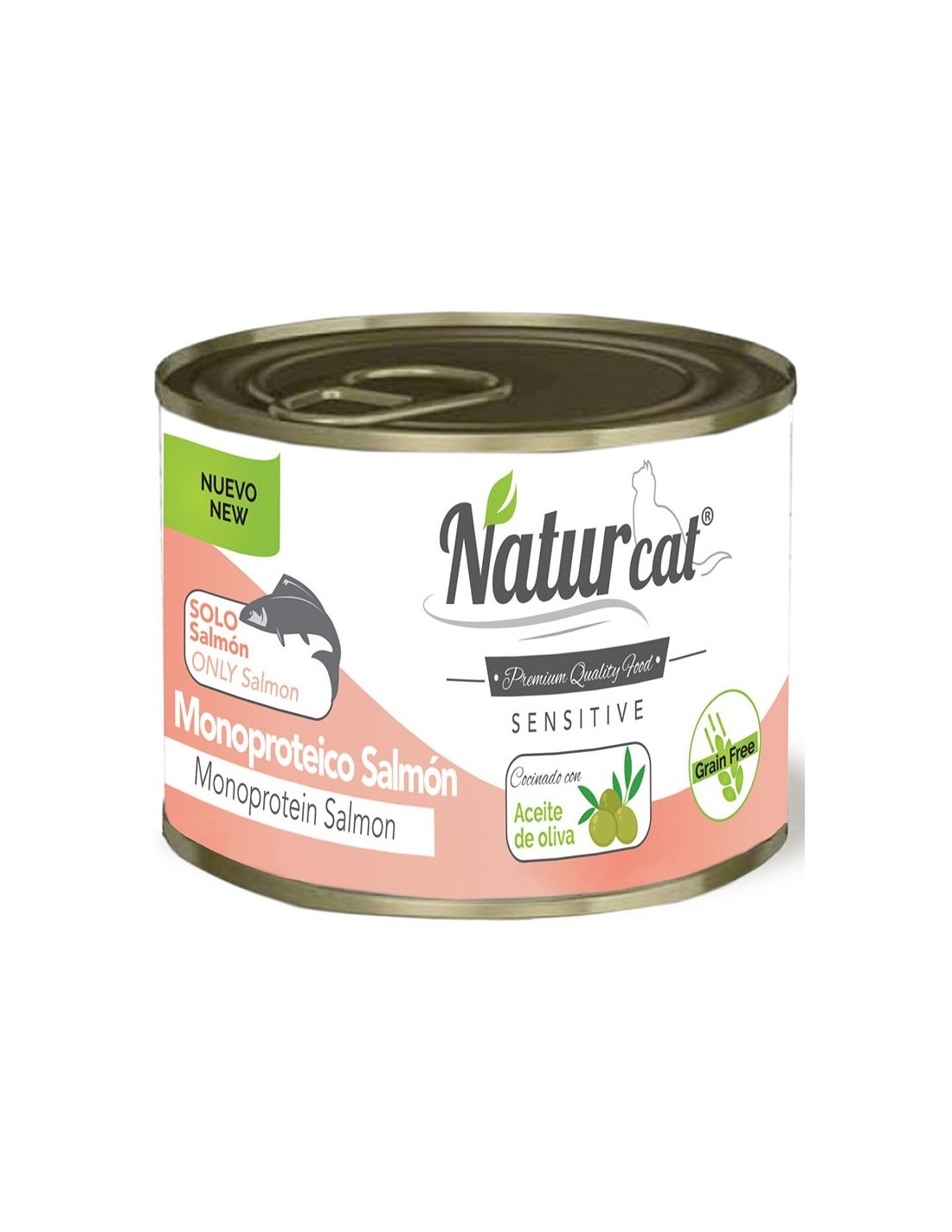 Naturcat Sensitive Adult Monoproteïc Salmó Grain Free. Llaunes Gats Adults Dieta Normal Digestibilitat Hipoal·lergènic Salmó en Paté Sense Cereals