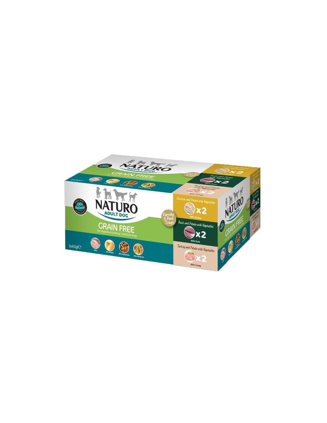 Naturo Dog Adult Grain Free Multipack. Tarrines Gossos Adults Totes les Races Dieta Normal Mix Aus