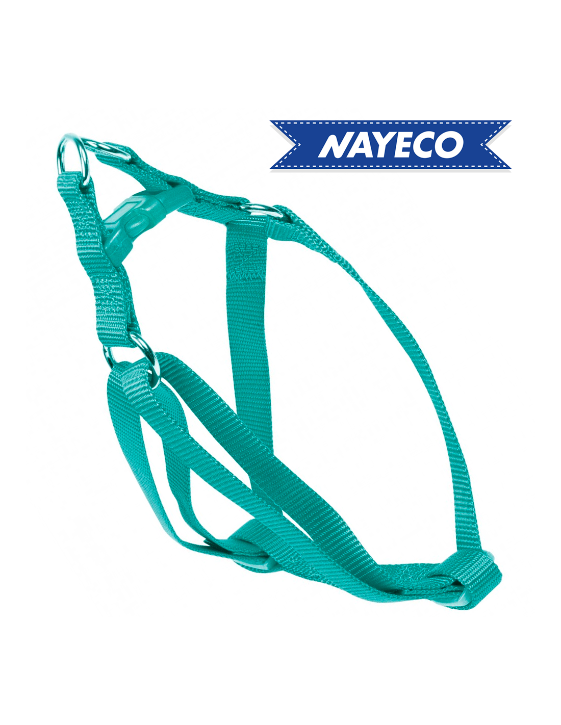 L'Arnès Nayeco Basic és un arnés pràctic i durador, fabricat amb niló trenat, dissenyat per ser molt fàcil de posar i treure. Compta amb un tancament de click resistent i anelles metàl·liques de gran durabilitat per a una subjecció ferma i segura, a més de ser regulable per a un ajust perfecte al cos del teu gos.