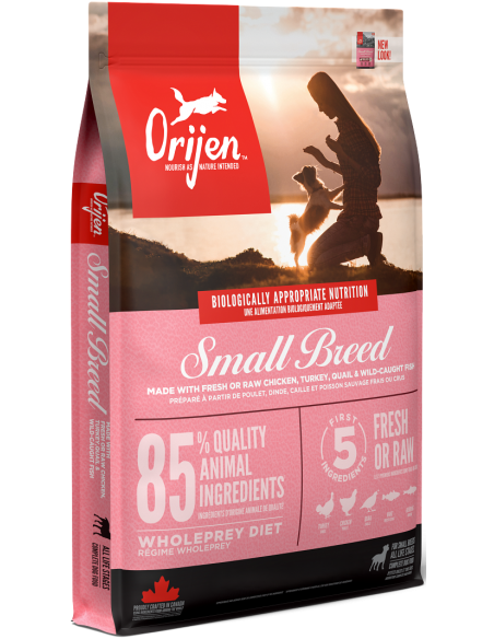 Aliment complet per a gossos ORIJEN™ Small Breed – Pollastre, gall dindi i peix.