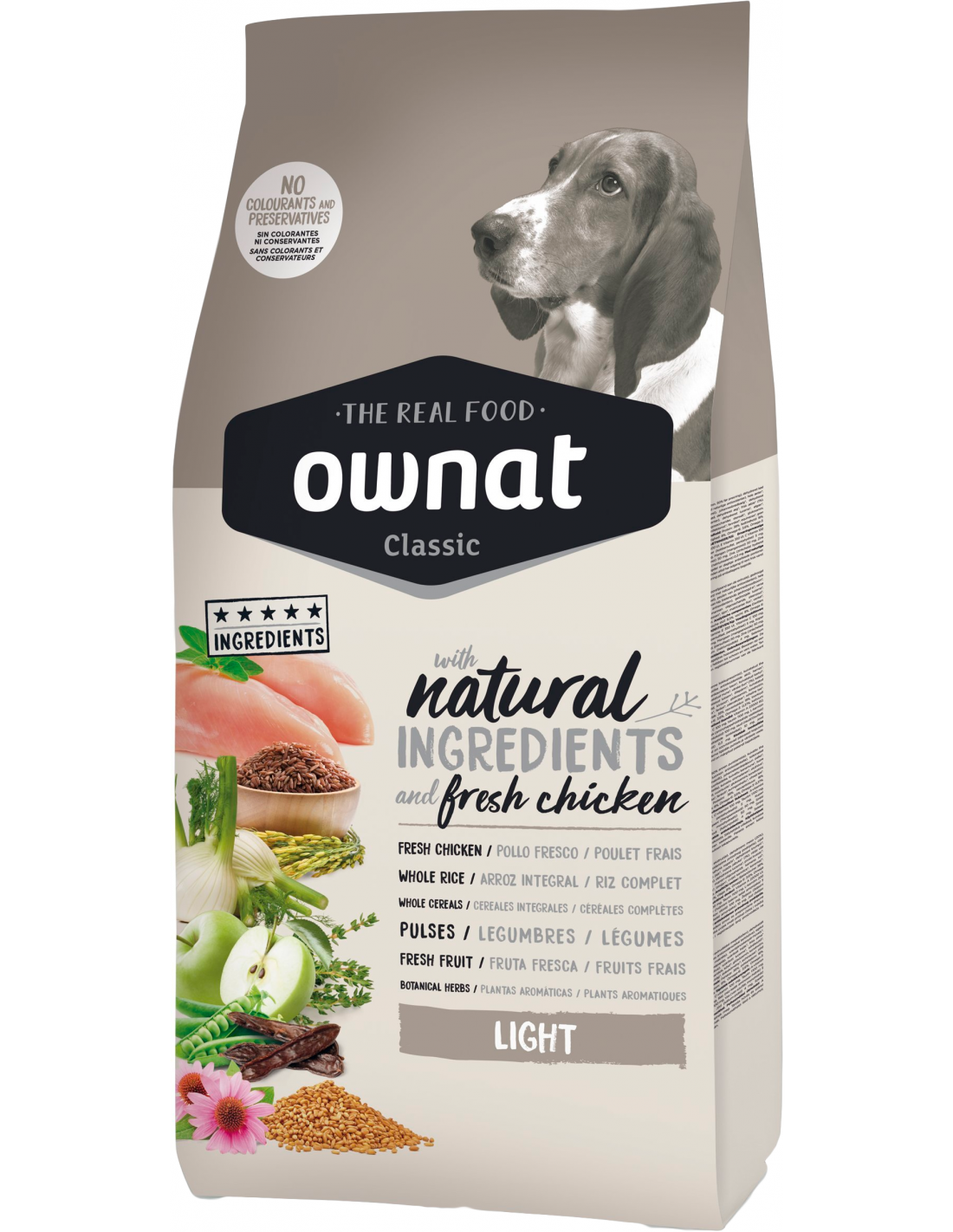 OWNAT CLASSIC LIGHT (DOG) és un aliment especialment formulat per a gossos amb problemes de sobrepès o propensos a guanyar-ne. Amb un baix nivell de matèries grasses i calories, però amb una elevada proporció de proteïnes per assegurar el correcte manteniment de la massa muscular.