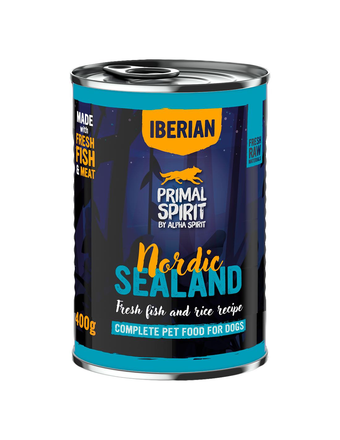 Primal Spirit Nordic Sealand Adult Dog és un aliment humit complet elaborat amb un 80% de carn i peix frescos (50% porc fresc, 30% peix fresc), dissenyat per a gossos adults. Ofereix una nutrició d'alta qualitat amb ingredients naturals i sense cereals afegits, garantint un sabor excel·lent i una digestió òptima.