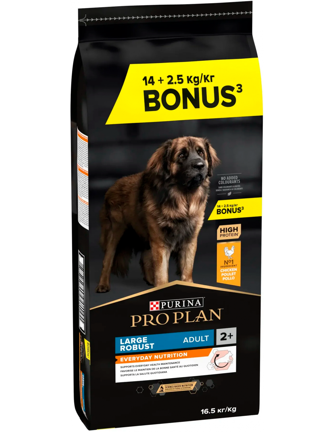 Pinso per a gossos adults de races grans robustes amb pollastre: alta proteïna, articulacions, pell i pelatge saludables. Promoció 14+2,5 kg.