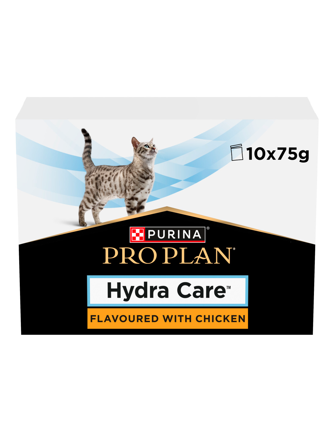Purina Pro Plan Veterinary Diets Cat Hydra Care Pollastre és un suplement per a la hidratació (aliment complementari) formulat per ajudar a incrementar el consum total de líquids en gats. El seu sabor a pollastre el fa molt apetible, afavorint una major ingestió d'aigua i donant suport a la salut urinària.