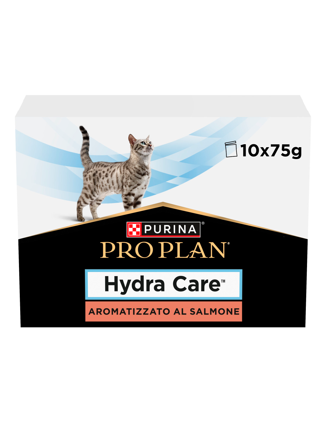 Purina Pro Plan Veterinary Diets Cat Hydra Care Salmó és un suplement per a la hidratació (aliment complementari) dissenyat per ajudar a incrementar el consum total de líquids en gats. El seu deliciós gust de salmó fomenta una major ingestió d'aigua, cosa que contribueix a la dilució de l'orina i dóna suport a la salut urinària.