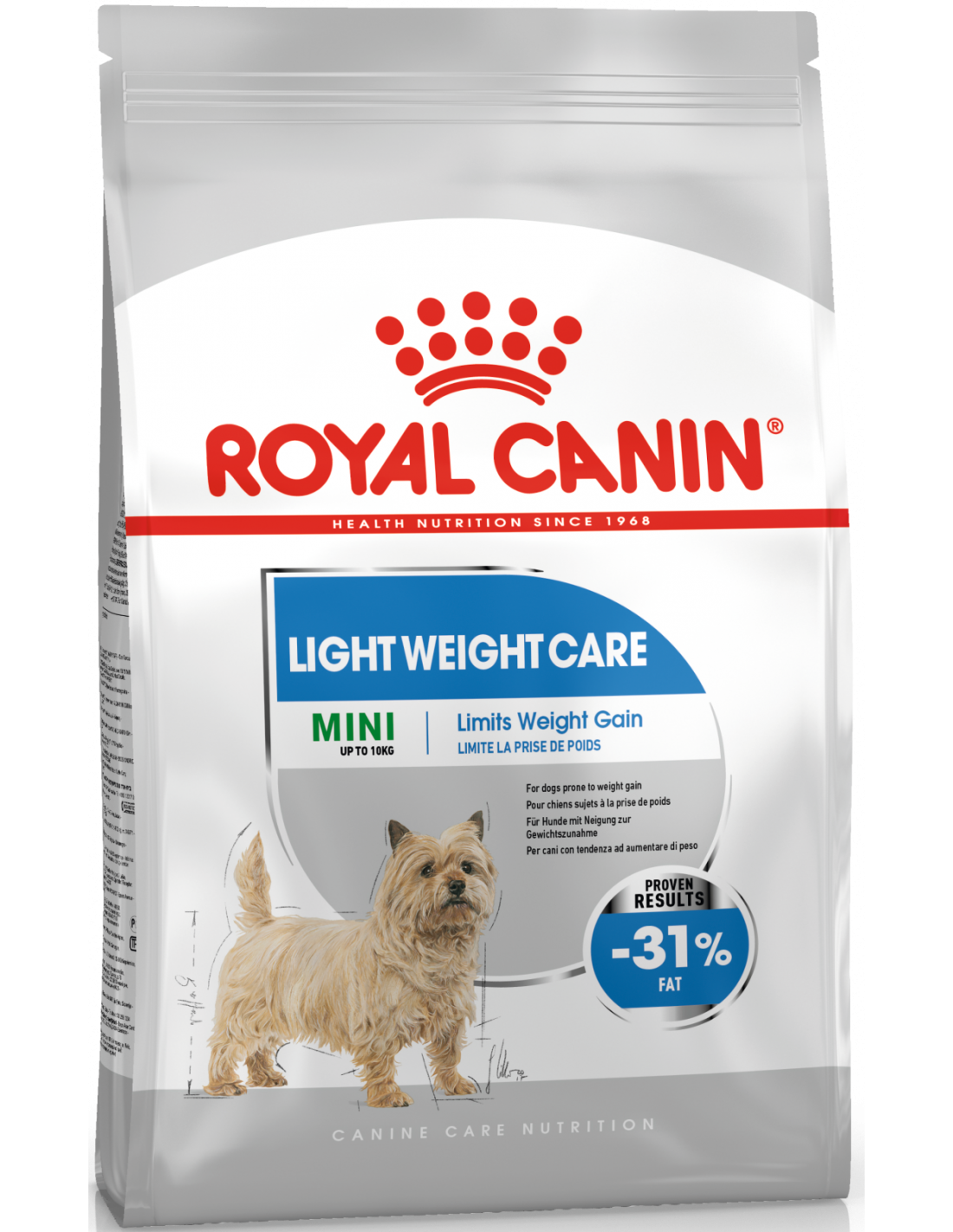 - REDUCCIÓ DE L'APORTAMENT CALÒRIC: L'excès de pes pot perjudicar la salut general del seu gos. MINI LIGHT WEIGHT CARE és una fórmula nutricional precisa i equilibrada que ajuda a aconseguir i mantindre el pes ideal. L'elevat contingut de proteïnes (30%) ajuda a mantindre la massa muscular i el baix contingut de greixos (11%) ajuda a limitar l'augment de pes. Aquesta fórmula té 15% menys de calories* i conté L-carnitina. *Comparat amb un aliment de manteniment.