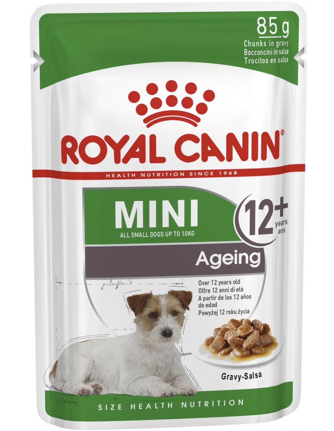 El menjar humit Royal Canin Mini Ageing +12 està formulat per cobrir les necessitats especials dels gossos majors de 12 anys de races petites. Quan els gossos envelleixen, requereixen d'unes cures diferents als de l'etapa de cadell i d'adult, i un dels canvis més importants és la seva alimentació. Necessiten una quantitat més limitada d'energia i un contingut moderat de greixos per a prevenir el sobrepès i ajudar-los a mantenir una condició física òptima.