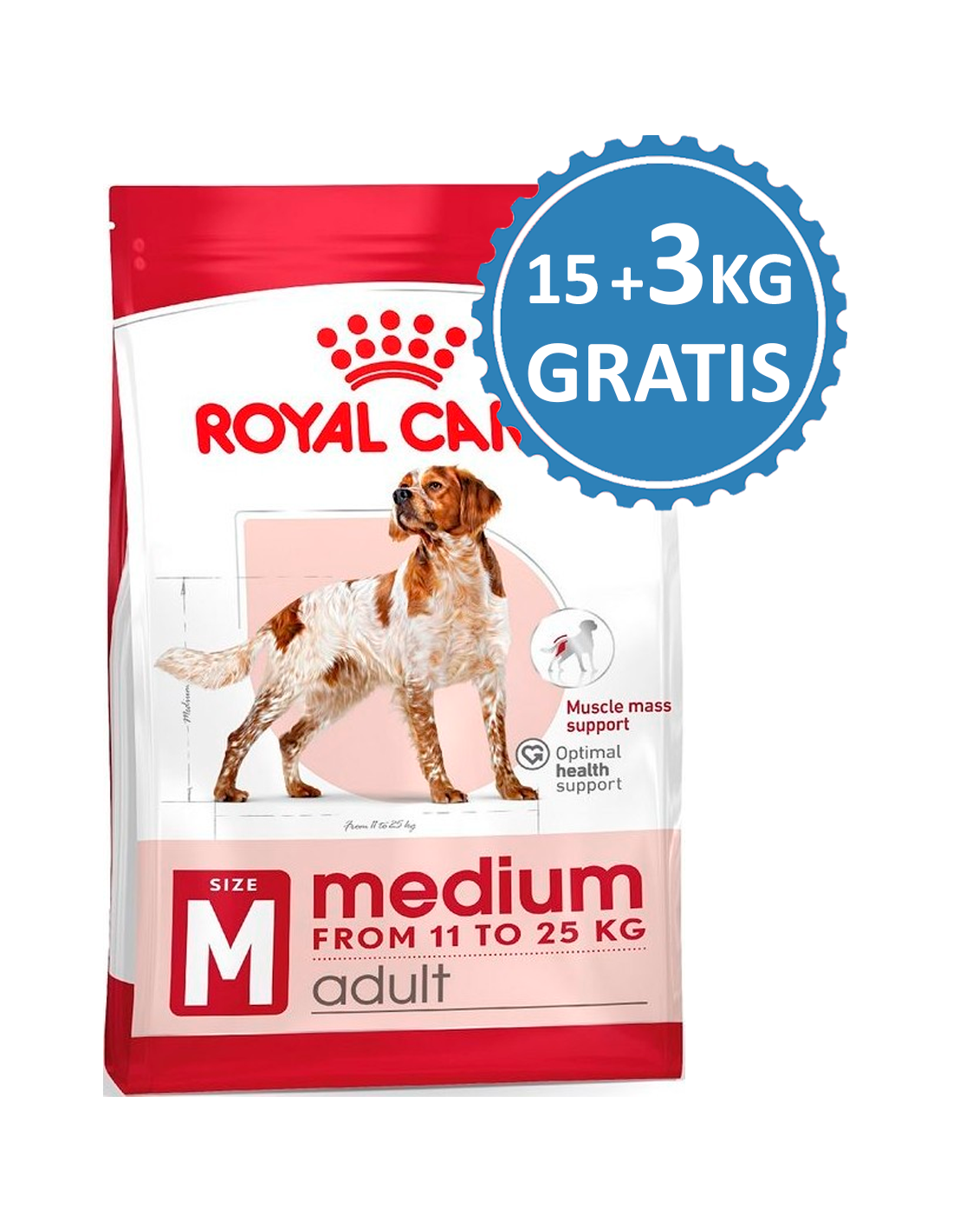 Royal Canin Medium Adult és un pinso complet i equilibrat per a gossos adults de raça mitjana sense especificacions dietètiques. Formulat amb au, aquest aliment està dissenyat per satisfer les necessitats nutricionals del teu gos, donant suport a les seves defenses naturals i promovent una pell sana.