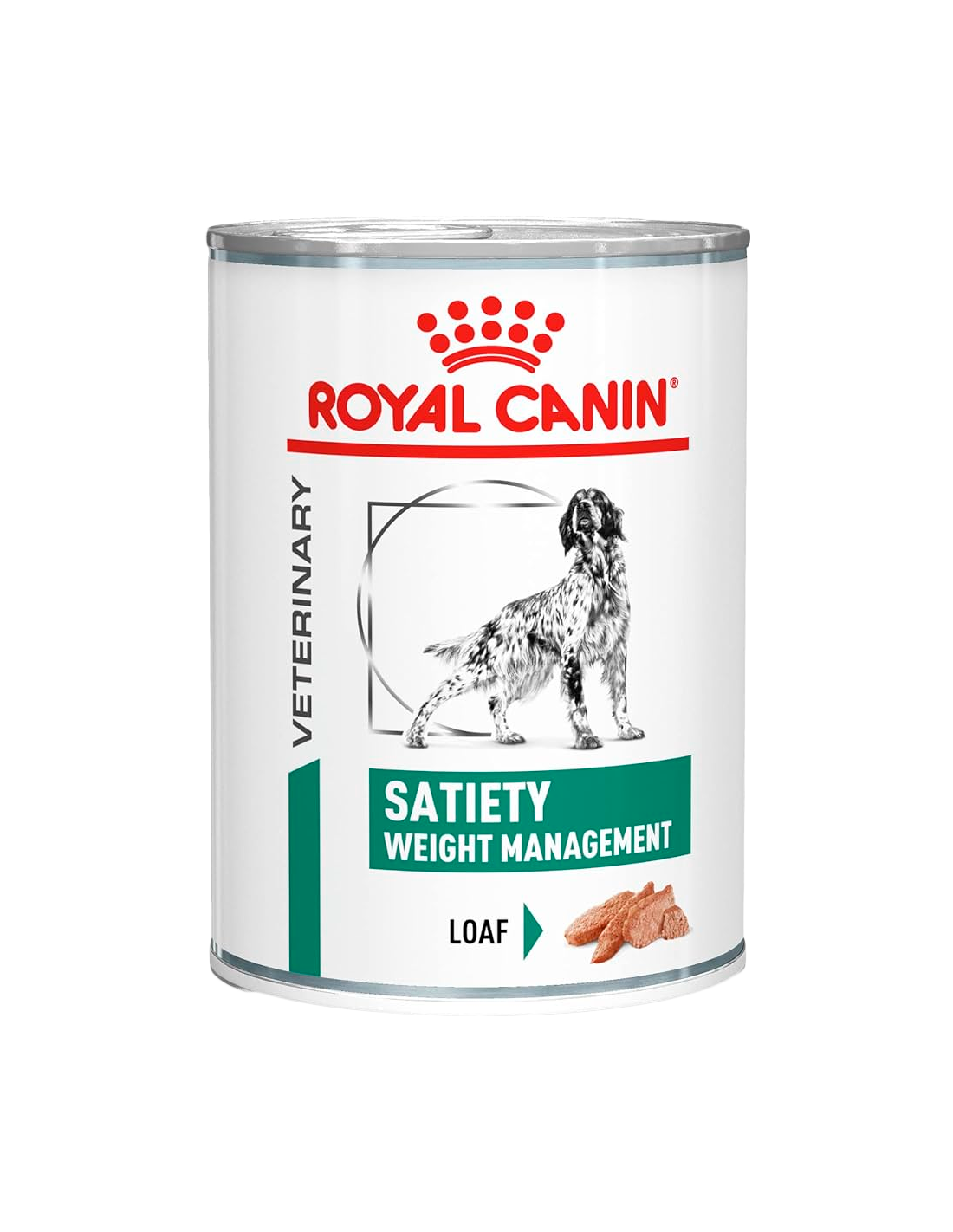 ROYAL CANIN® Satiety Weight Management Paté és un aliment humit dietètic complet per a gossos adults, formulat específicament per afavorir la reducció i el manteniment d'un pes saludable en casos de sobrepès. El seu perfil nutricional ajuda a que el gos se senti saciat entre àpats i contribueix al manteniment de la massa muscular.