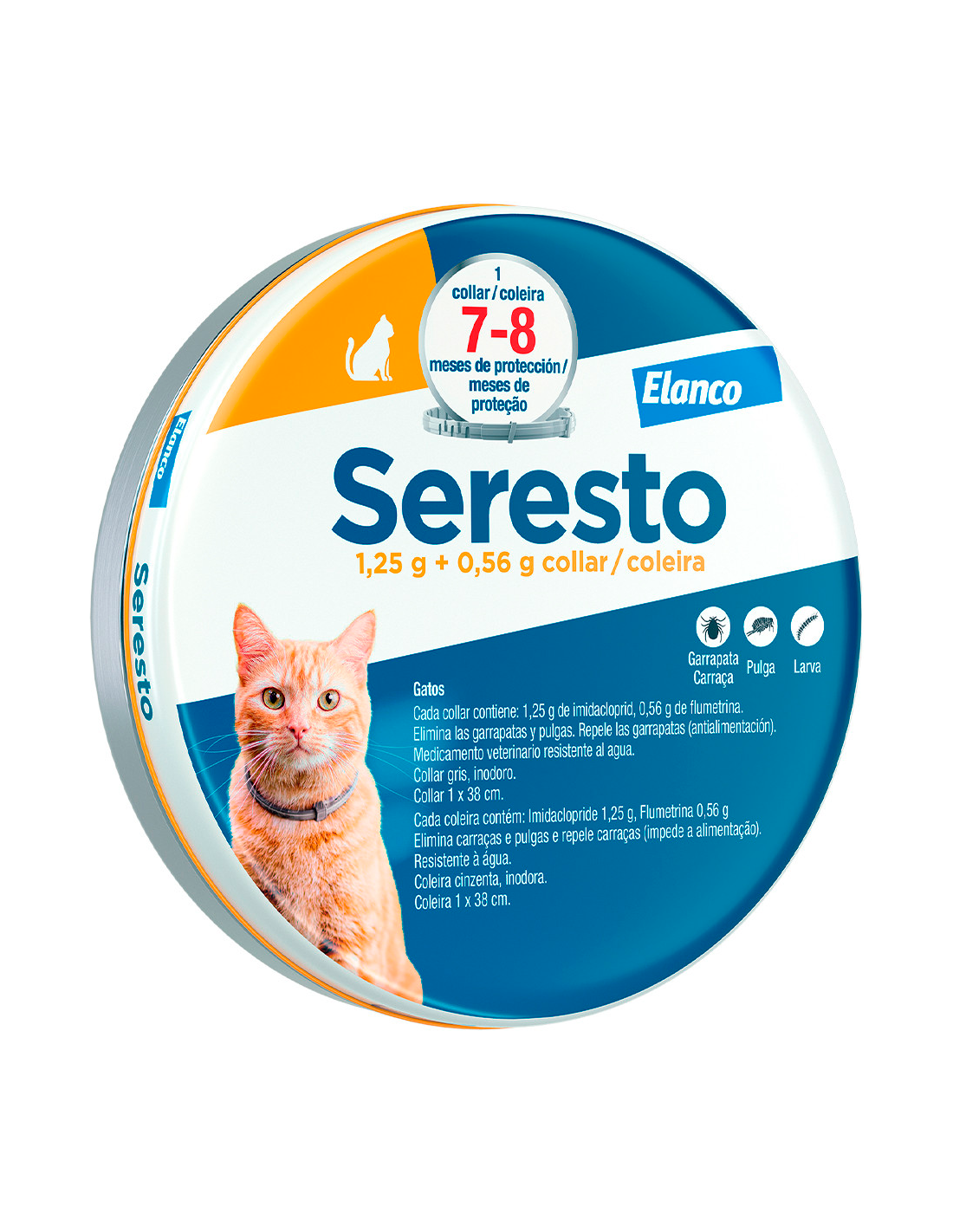 Collar antiparasitari Seresto Cat ofereix als gats fins a 8 mesos de protecció eficaç contra puces i paparres. La seva acció insecticida i acaricida no només tracta les infestacions, sinó que també prevé la reinfestació, protegeix l'entorn de l'animal inhibint el desenvolupament de larves de puça i pot ser part del tractament per a la dermatitis al·lèrgica per picada de puça.