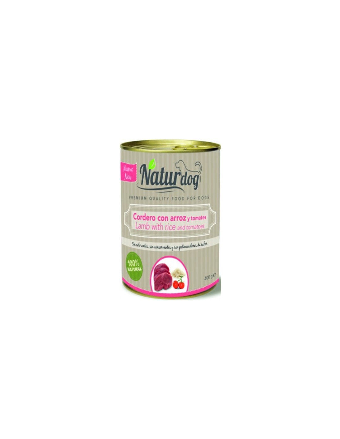 Naturdog Adult Cordero, Arroz y Tomate 400 gr. Latas Perros Adultos Todas las Razas Dieta Normal Cordero Arroz Tomate
