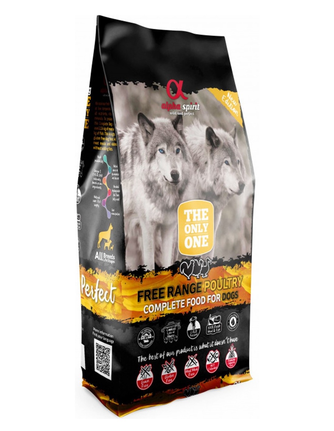 Este pienso es un alimento completo para perros de todas las razas y edades, así como para aquellos que padecen sensibilidad alimentaria, gracias a su receta hipoalergénica. Alpha Spirit The Only One Poultry está compuesto por una gran cantidad de ave de corral fresca: pato, pavo y pollo, además de por pescado fresco. Aporta a tu perro nutrientes y sustancias vitales importantes, entre las que se encuentran los ácidos grasos omega 3, la glucosamina y los aminoácidos esenciales naturales. Este alimento destaca por su delicioso sabor y por su alta aceptación.
