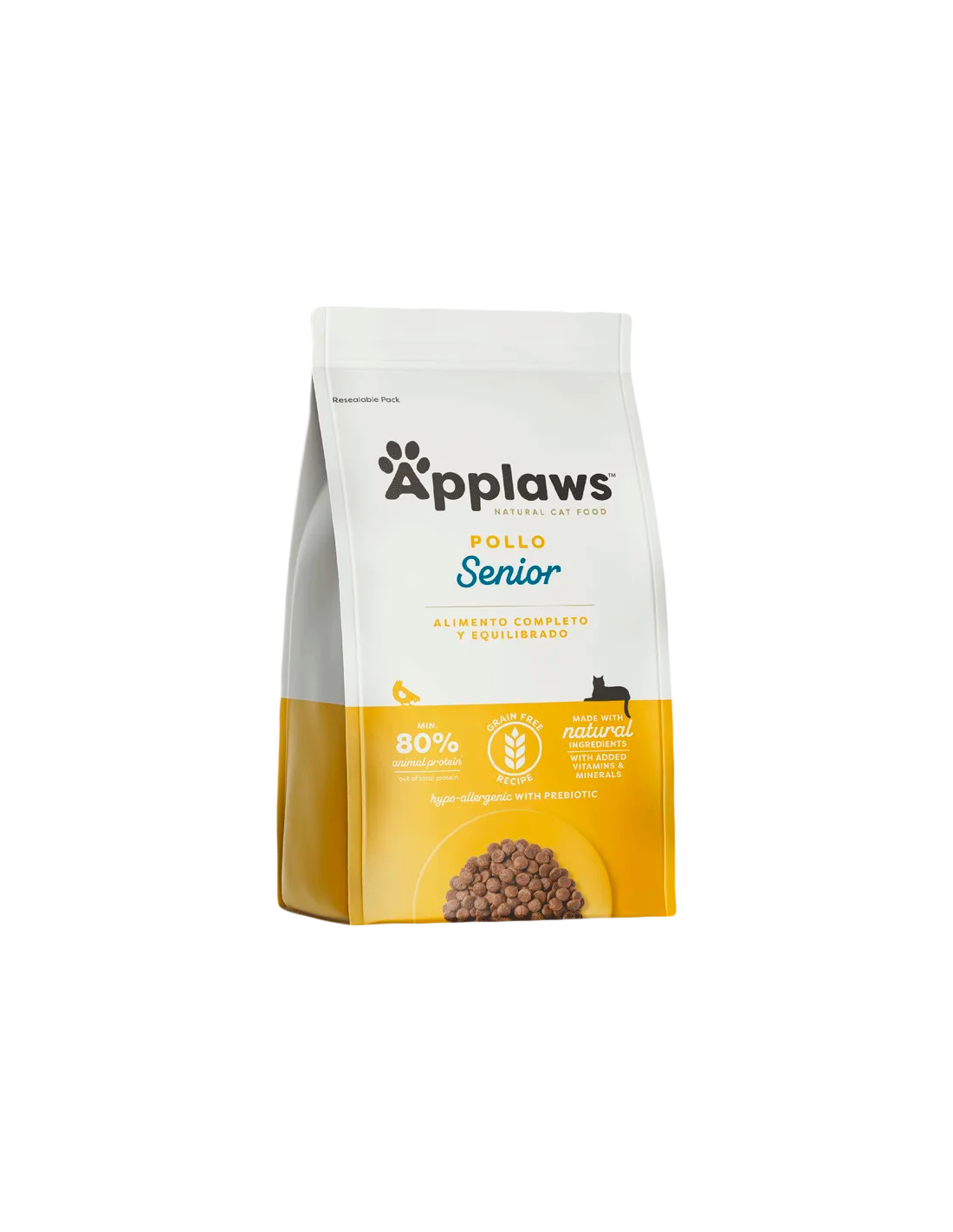 Applaws Cat Senior Pollo es un pienso natural sin cereales diseñado para gatos mayores, con un alto contenido de pollo (80%). Este alimento, fácil de digerir, proporciona valiosas proteínas, además de patata como fuente de carbohidratos, y aceites de salmón y coco para favorecer una piel sana, un pelaje brillante y una función cardiaca óptima.