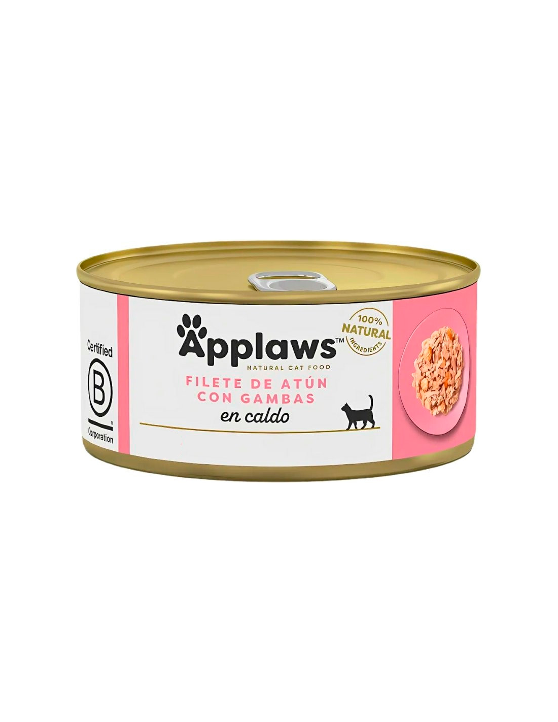 Applaws Adult Atún con Gambas en Caldo es una comida húmeda complementaria que destaca por sus ingredientes naturales y visibles: filete de atún (52%) y gambas (23%), obtenidos mediante pesca sostenible. Esta receta, sin aditivos ni conservantes, es una fuente natural de taurina que apoya la salud cardíaca y ocular de gatos adultos.