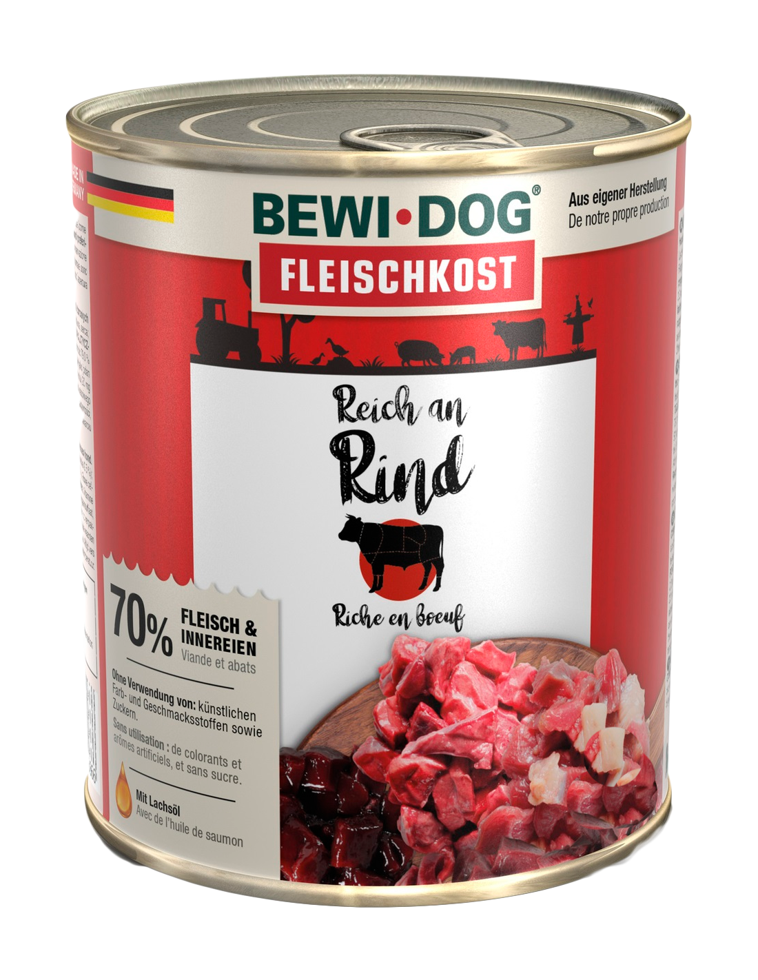 Bewi Dog Adult Rico en Ternera es una comida húmeda completa con carne jugosa y una textura firme, diseñada para el disfrute de la mayoría de los perros. Contiene todas las vitaminas, minerales y oligoelementos importantes, cocinada suavemente y enriquecida con aceite de salmón. Puede combinarse con alimentos secos.