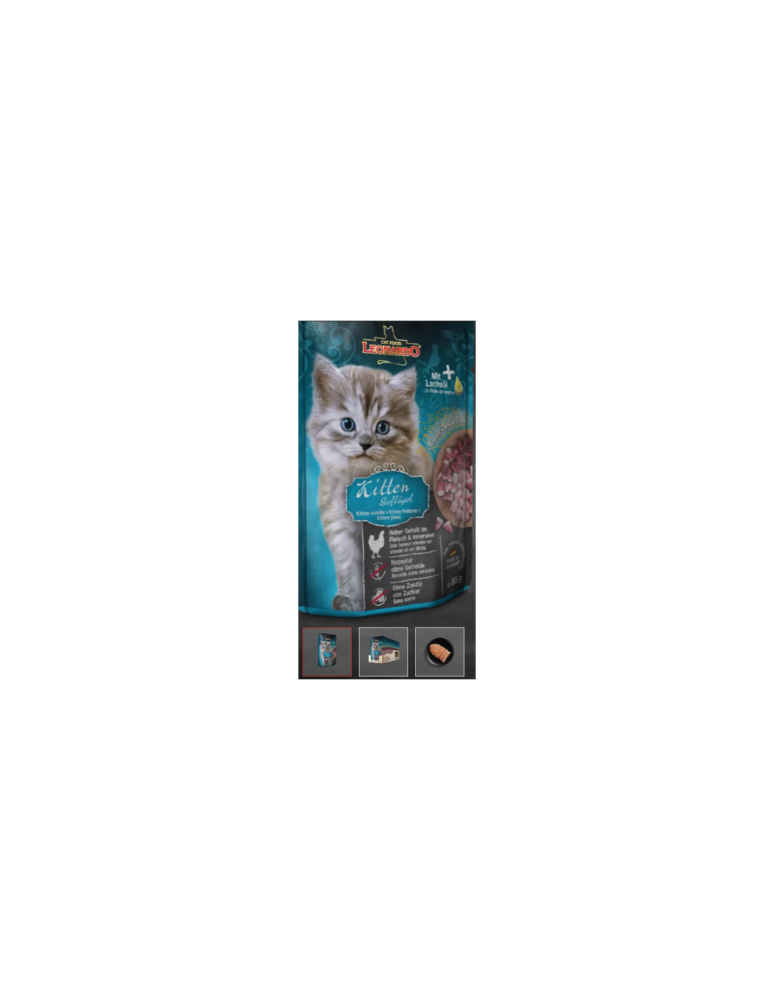 carne, corazón, hígado y mollejas de ave (70 %); caldo de ave (28,6 %); cáscaras de huevo, secas (0,5 %); minerales (0,5 %); aceite de salmón (0,4 %)
