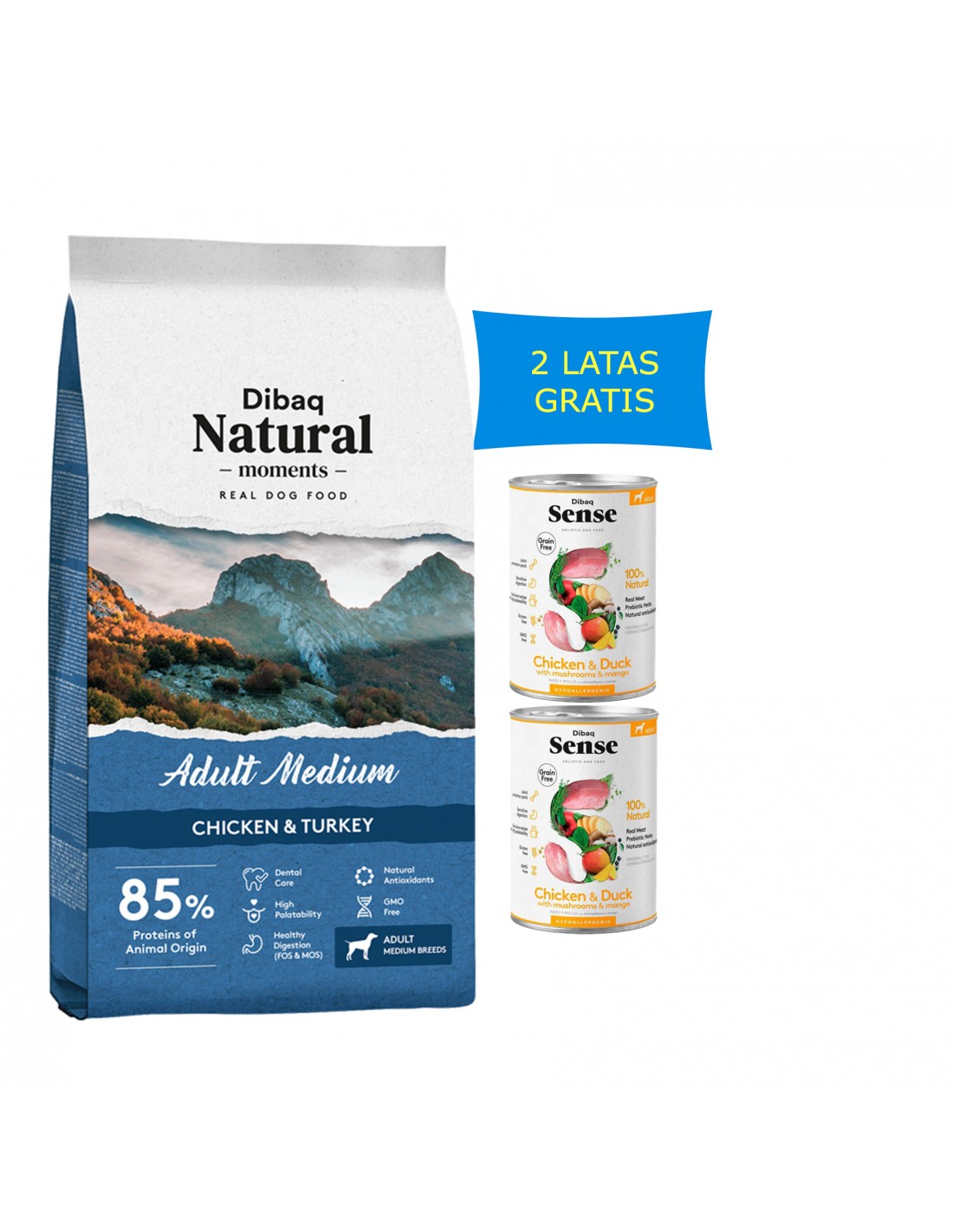Dibaq Natural Moments Adult Medium Pollo y Pavo. Pienso Perros Adultos Razas Medianas Dieta Normal Pollo Pavo