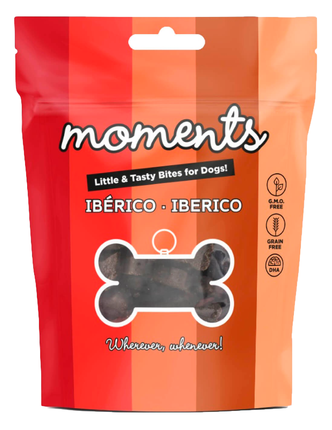 Dingo Moments Adult Ibérico son fantásticos snacks con divertidas formas y sabores. Elaborados con cerdo ibérico fresco, son ricos en DHA y libres de grano y de transgénicos, ofreciendo una alta digestibilidad.