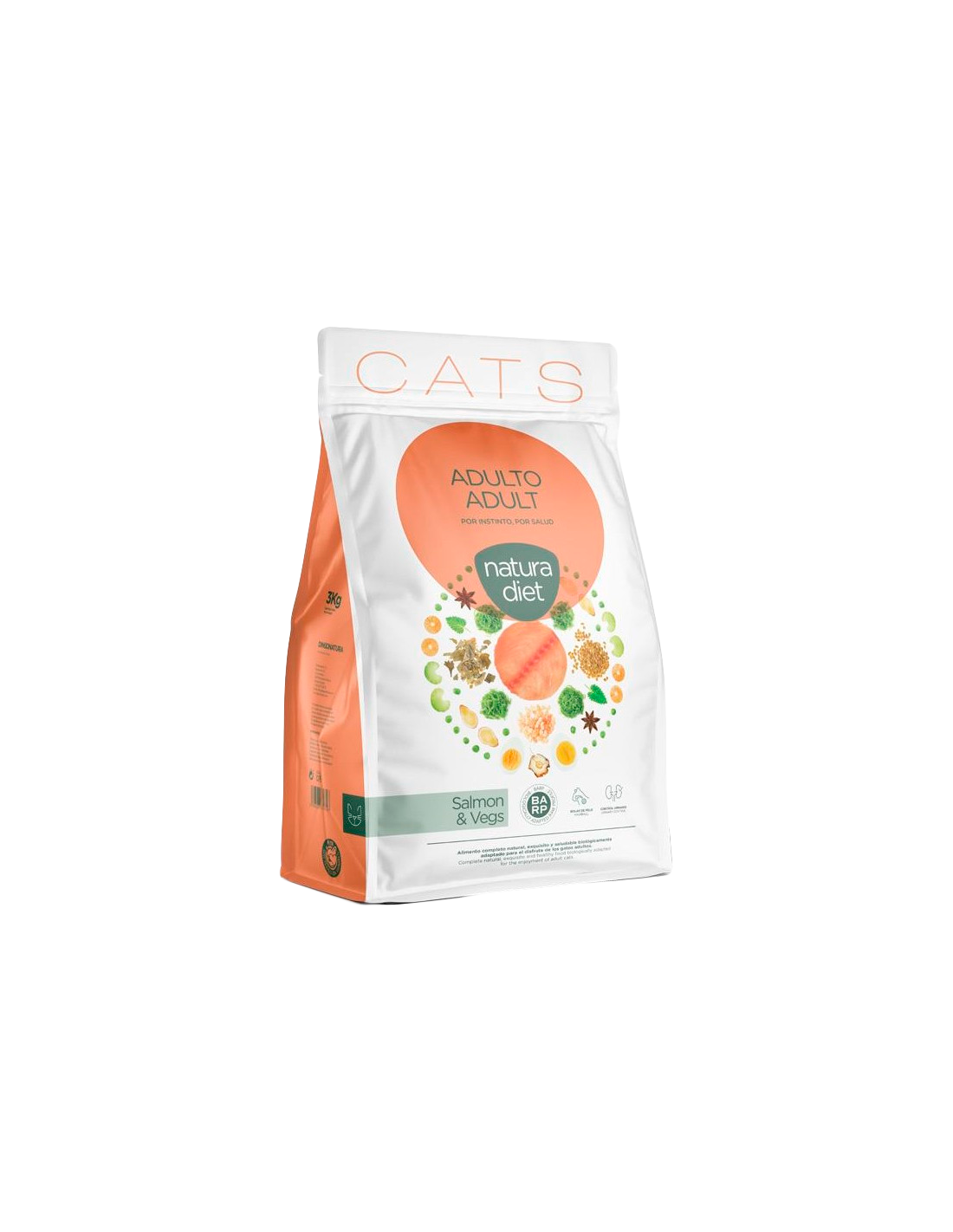 Dingo Natura Diet Cat Adult Salmón es un alimento completo, natural y saludable, biológicamente adaptado para gatos adultos. Su cuidada selección de ingredientes promueve la regulación del estrés y el bienestar emocional, a la vez que cuida el sistema urinario y digestivo.
