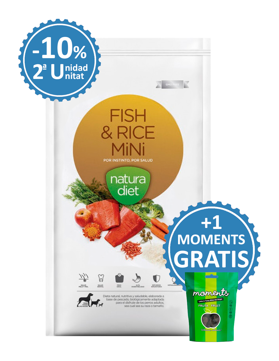 Dingo Natura Diet Adult Fish & Rice Mini es una dieta natural, nutritiva y saludable, elaborada a base de pescado. Está biológicamente adaptada para perros adultos de razas pequeñas, ofreciendo una experiencia de disfrute única y una nutrición completa.
