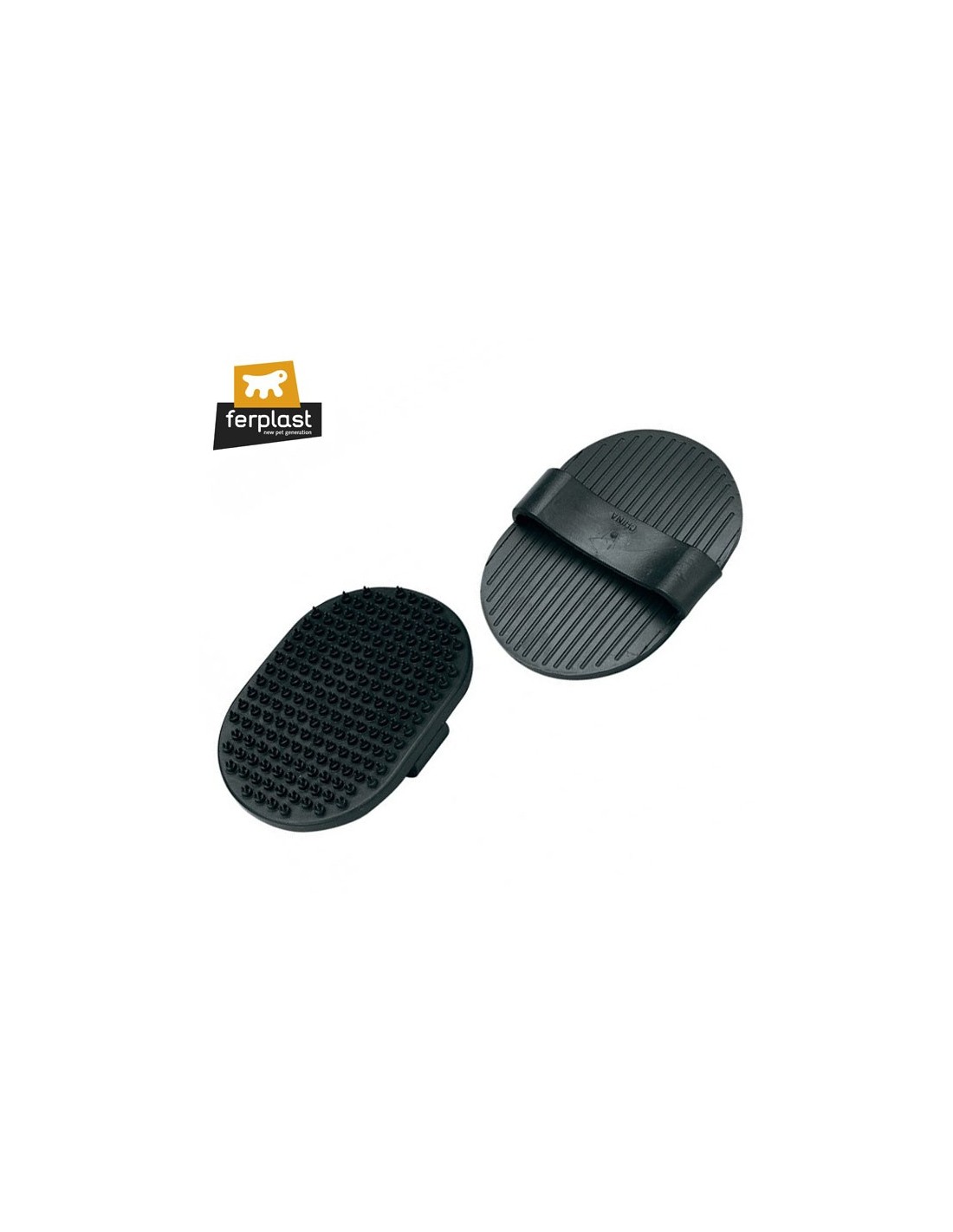 Cepillo / manopla de goma para masajear y limpiar a tu mascota, especial para perros de pelo corto y grueso. El modelo GRO 5932 tiene forma ovalada y una práctica tira para la mano. Además sus dientes permiten eliminar el pelo muerto del manto de tu mascota.