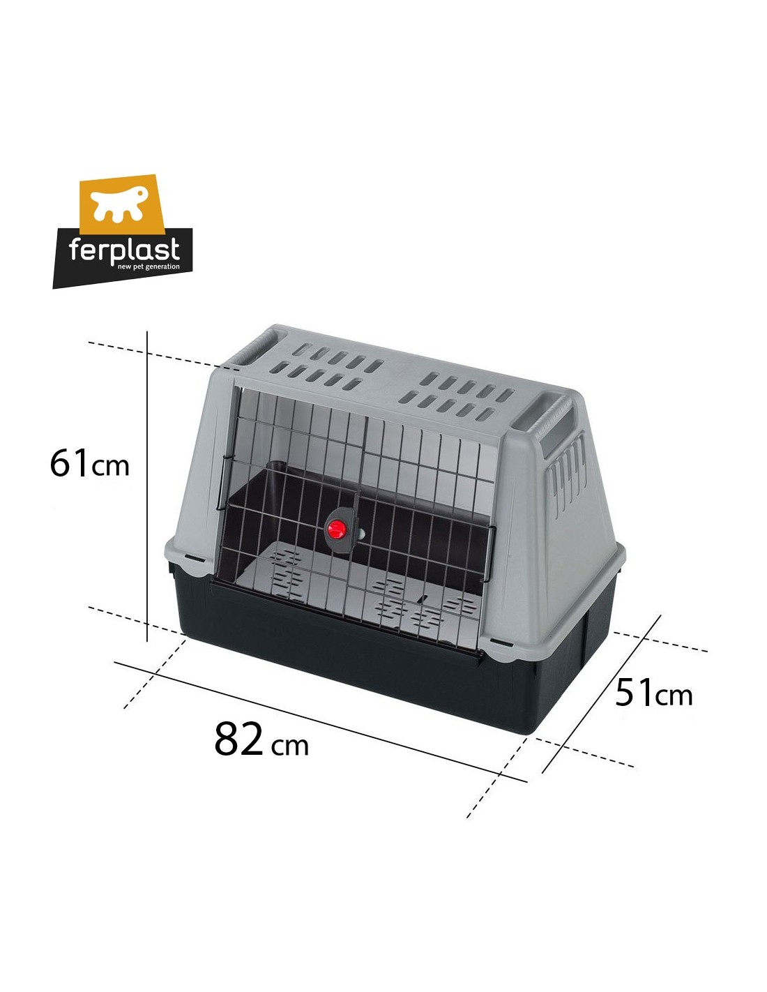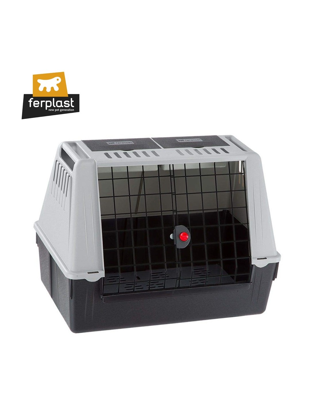 Ferplast Transportín Atlas Car 80 Gris (82 x 51 x 61 cm). Transportín para Coche Perros Medianos / Grandes