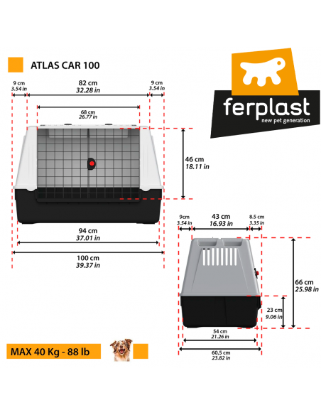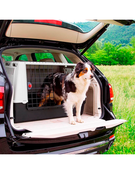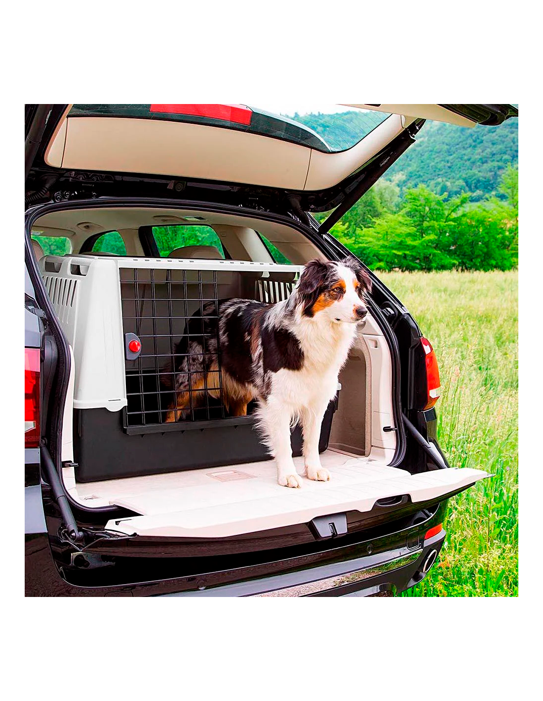 El Ferplast Transportín Atlas Car es una sólida y ligera caja de viaje diseñada para llevar a tu perro en el maletero del coche con total seguridad. Fabricado con materiales reciclados, ofrece comodidad y ventilación para viajes agradables, siendo ideal para perros medianos a grandes.
