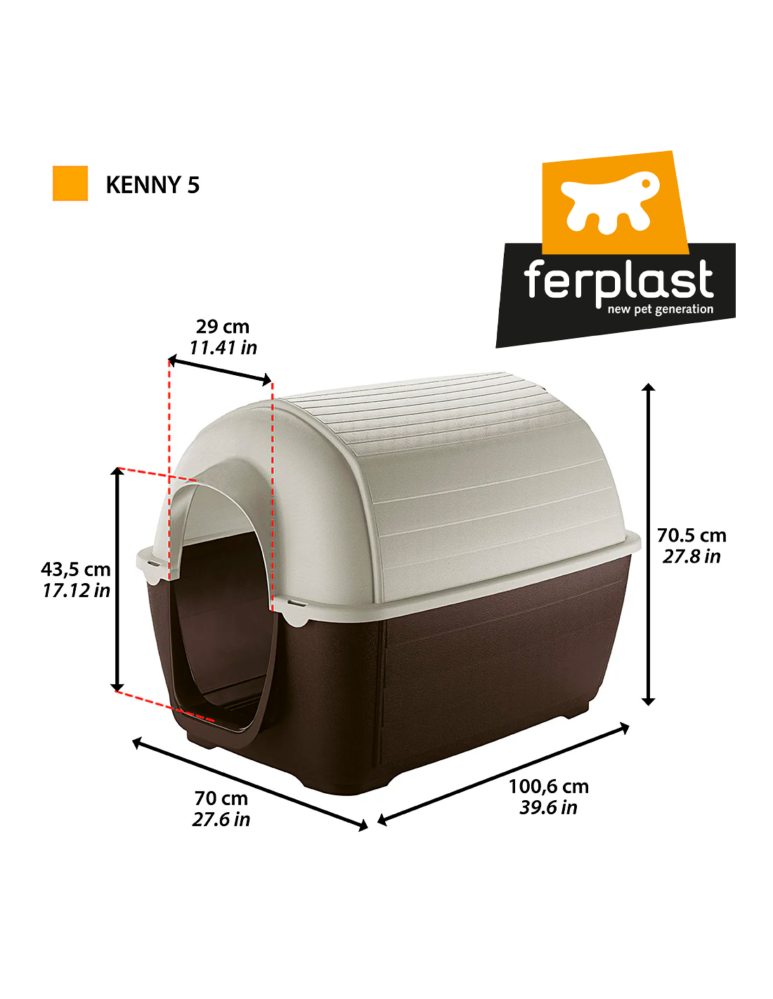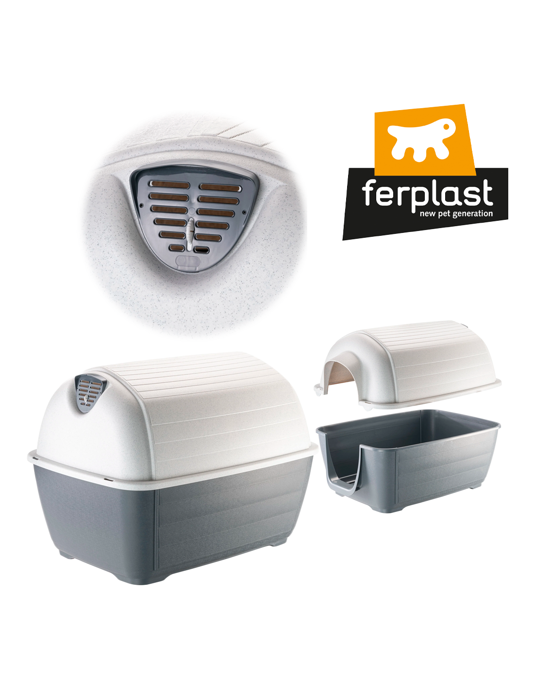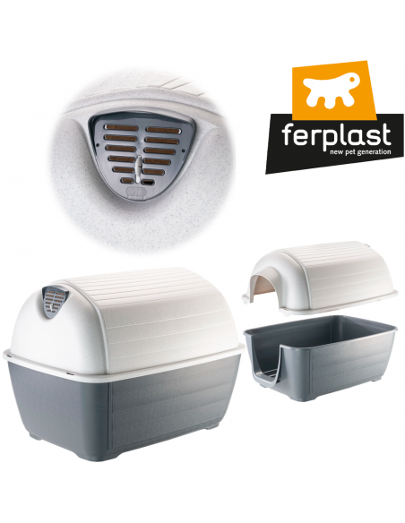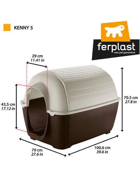 La Ferplast Caseta Exterior Kenny es una caseta de plástico reciclado con diseño de iglú, ideal para perros y gatos. Ofrece un excelente aislamiento térmico para cualquier estación, máxima ventilación interna, sistema de drenaje y una base elevada para aislarla del suelo. Es muy fácil de limpiar gracias a su diseño desmontable y está disponible en 5 tamaños.
