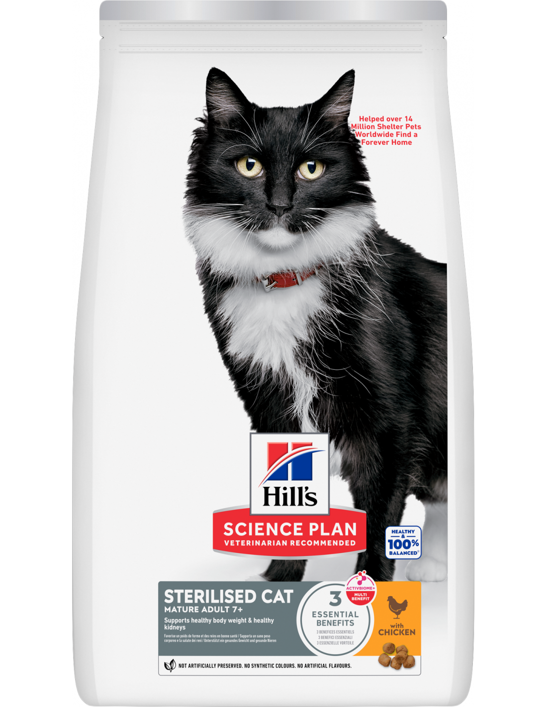 Hill's Science Plan Sterilised Cat alimento para gatos mayores con pollo está especialmente formulado con la tecnología ActivBiome+ Multi-Benefit. Ofrece una nutrición cuidadosamente equilibrada para satisfacer las necesidades de gatos esterilizados de 7 años o más, favoreciendo un envejecimiento saludable y bienestar general.